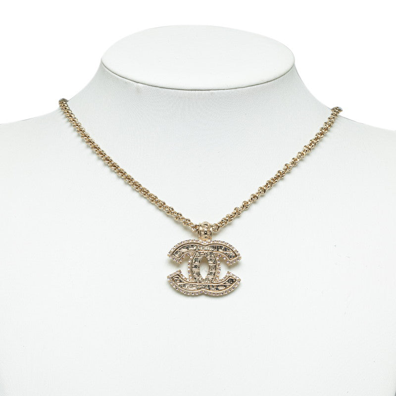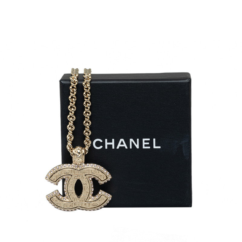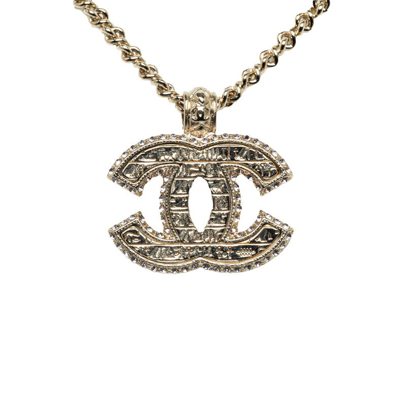 シャネル ココマーク ラインストーン レリーフ ネックレス ゴールド メッキ レディース CHANEL 【中古】