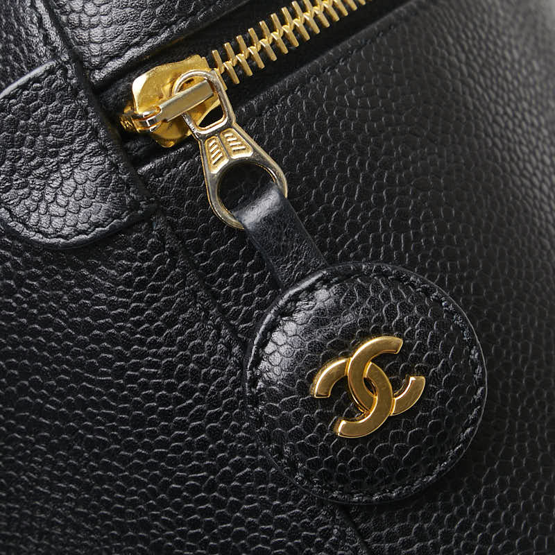 シャネル デカココマーク ハンドバッグ バニティバッグ ヴァニティバッグ ブラック キャビアスキン レディース CHANEL 【中古】
