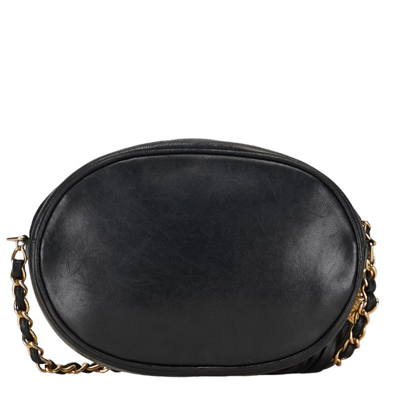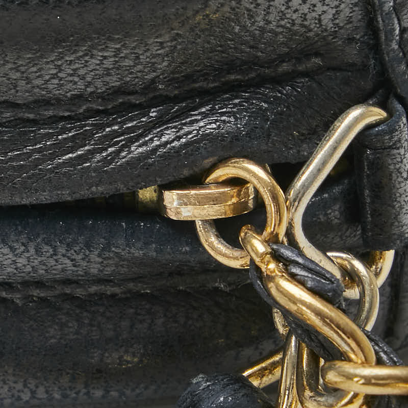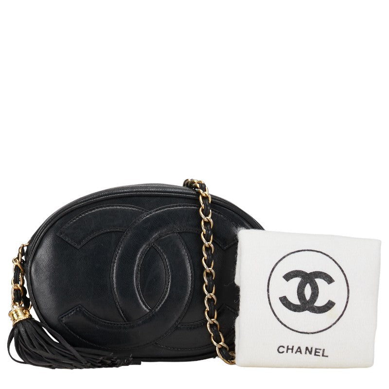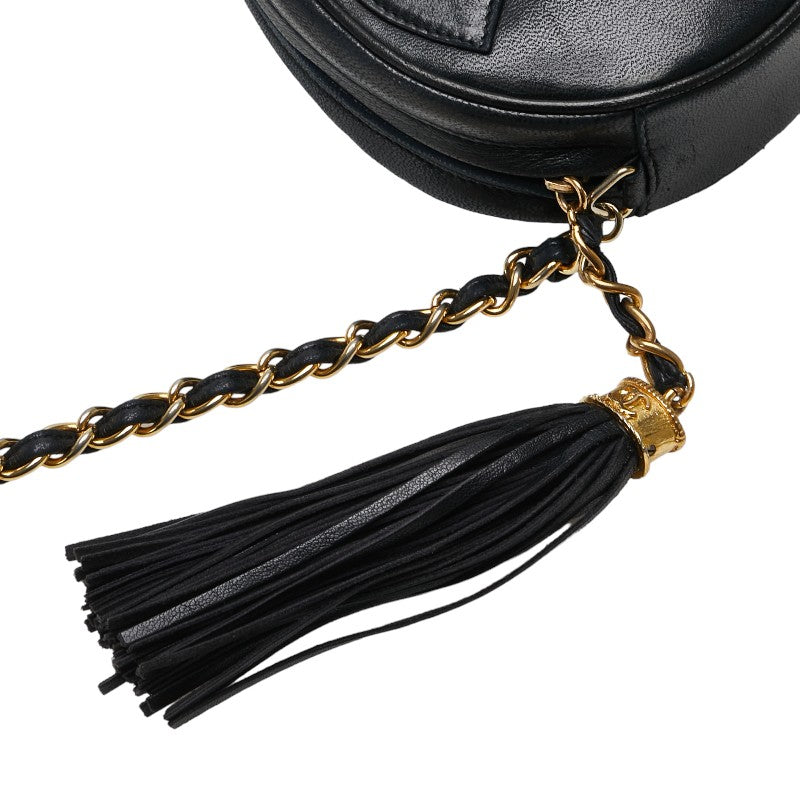 シャネル デカココマーク フリンジ 斜め掛け チェーン ショルダーバッグ ブラック レザー レディース CHANEL 【中古】