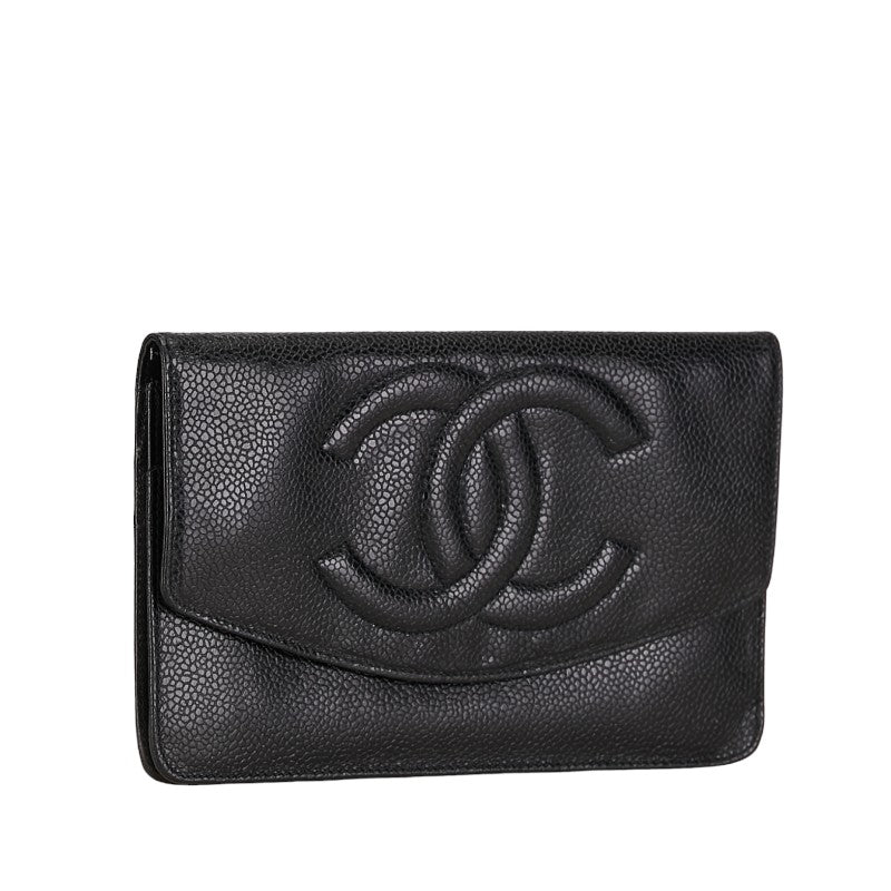 シャネル ココマーク 長財布 ブラック キャビアスキン レディース CHANEL 【中古】