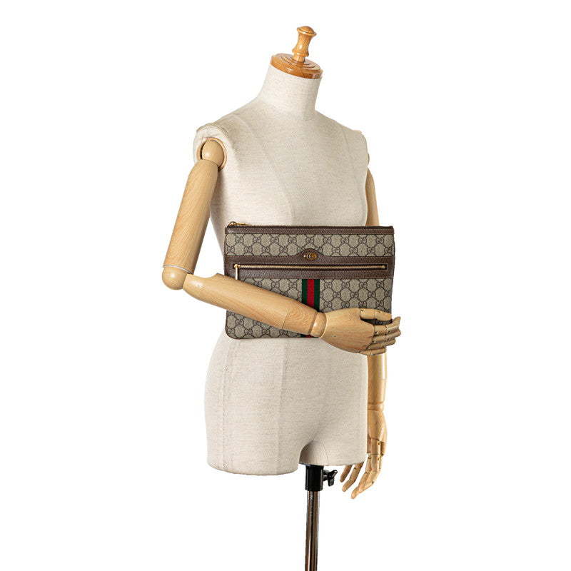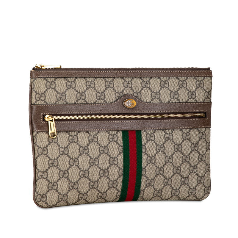 グッチ GGスプリーム シェリーライン クラッチバッグ 517551 ベージュ ブラウン PVC レザー レディース GUCCI 【中古】