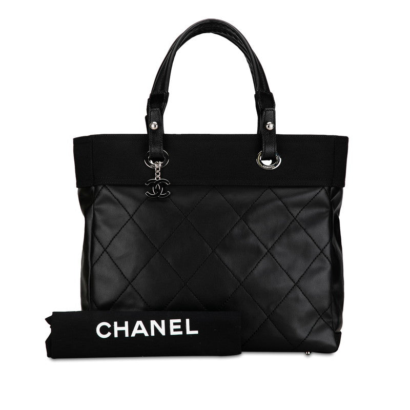 シャネル ココマーク パリビアリッツ トートMM ハンドバッグ トートバッグ A34209 ブラック PVC キャンバス レディース CHANEL 【中古】