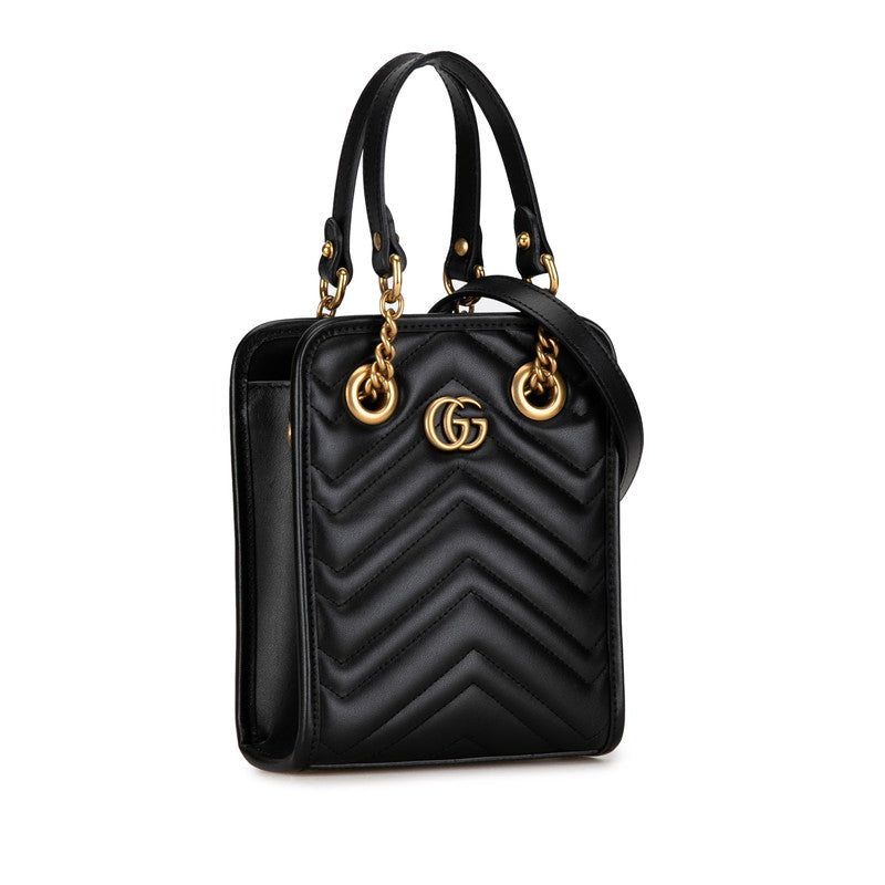グッチ GGマーモント キルティング ハンドバッグ ショルダーバッグ 2WAY 696123 ブラック レザー レディース GUCCI 【中古】