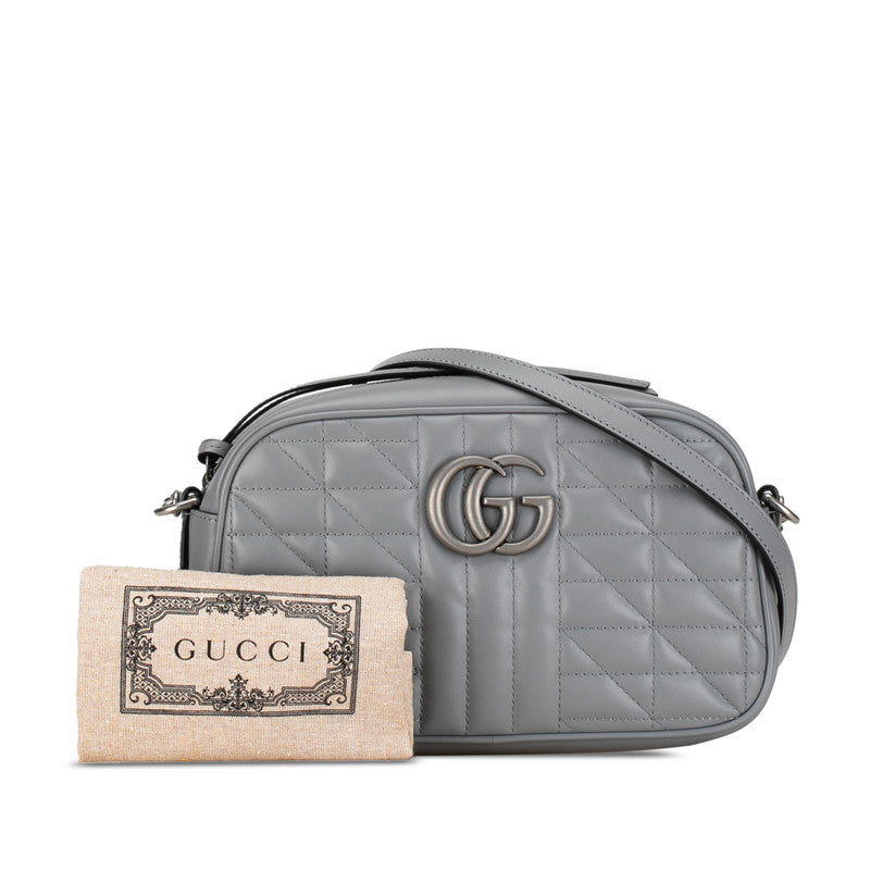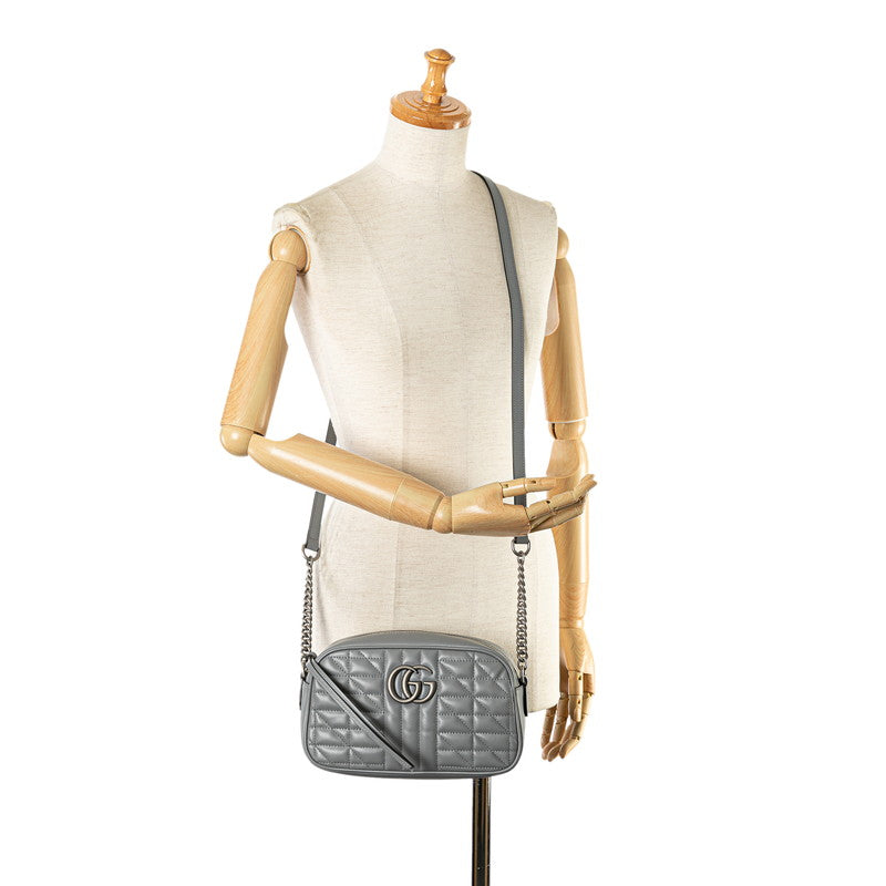 グッチ GGマーモント キルティング 斜め掛け チェーン ショルダーバッグ 447632 グレー レザー レディース GUCCI 【中古】