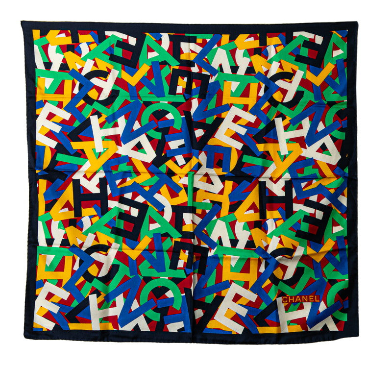 シャネル ココマーク ロゴピカソ スカーフ ネイビー マルチカラー シルク レディース CHANEL 【中古】