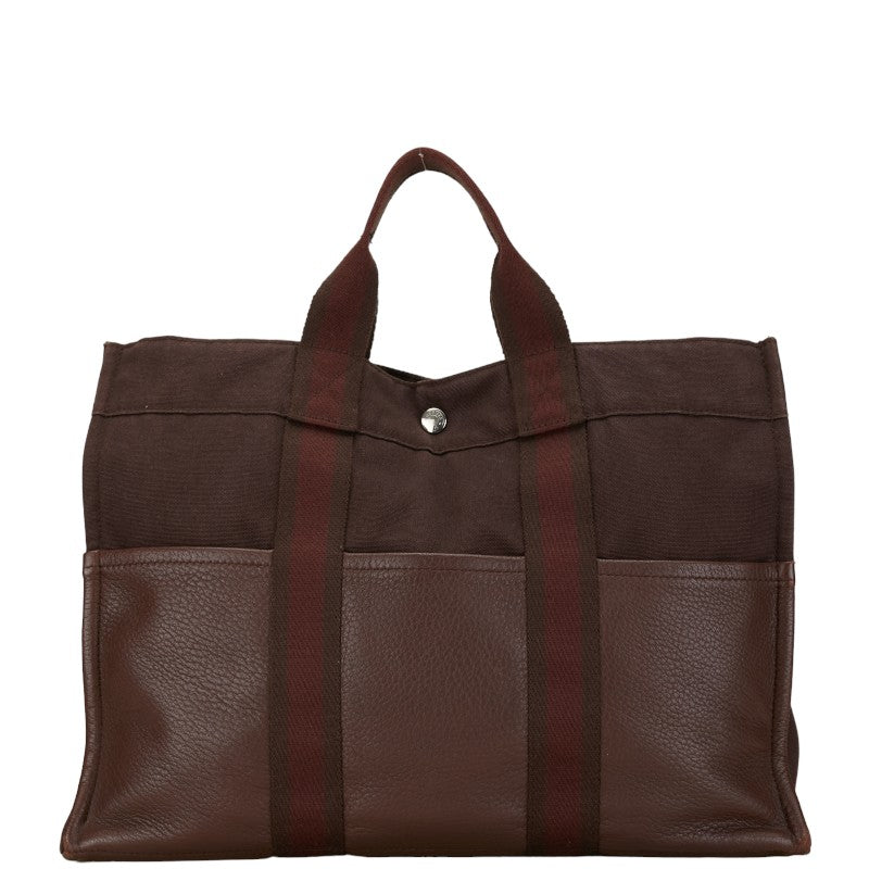 エルメス フルートゥMM トートバッグ ハンドバッグ ブラウン レザー キャンバス レディース HERMES 【中古】