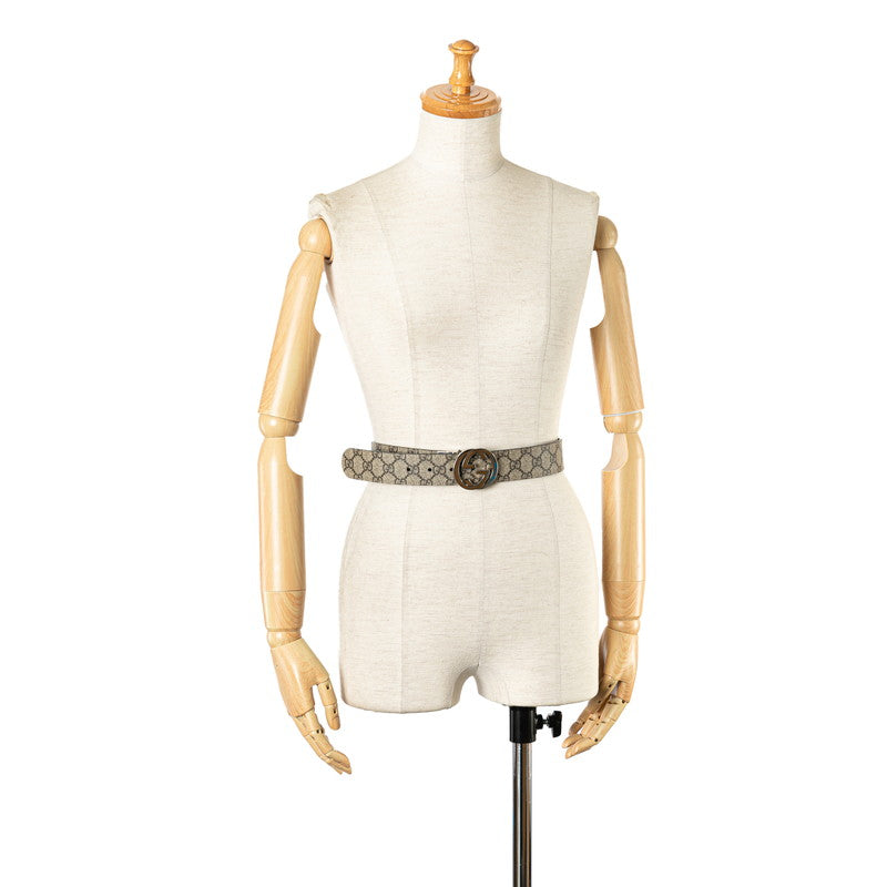グッチ GGスプリーム ベルト サイズ:85/34 473030 ベージュ シルバー PVC レディース GUCCI 【中古】