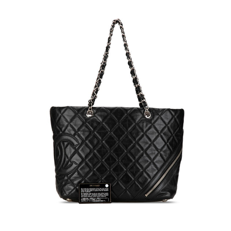 シャネル ココマーク カンボン チェーン ハンドバッグ トートバッグ ブラック シルバー レザー レディース CHANEL 【中古】