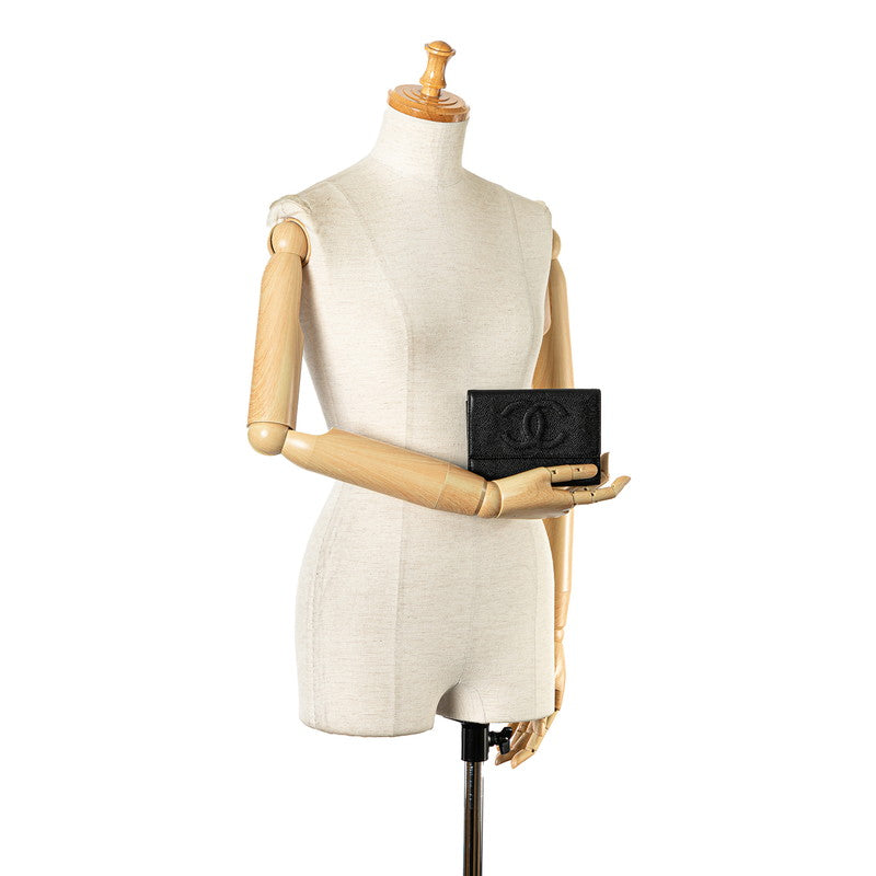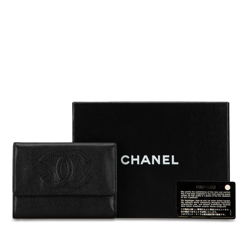 シャネル ココマーク 三つ折り財布 ブラック キャビアスキン レディース CHANEL 【中古】