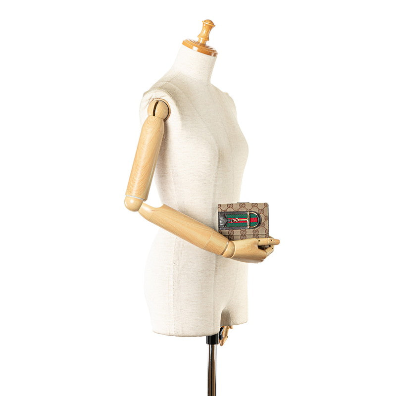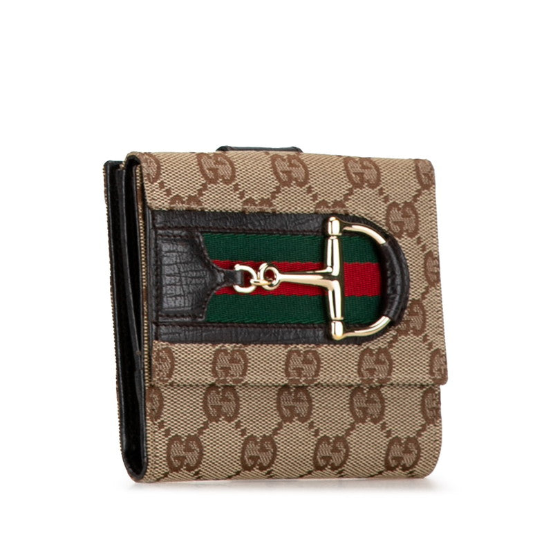 グッチ GGキャンバス ホースビット シェリーライン 二つ折り財布 138031 ブラウン キャンバス レザー レディース GUCCI 【中古】