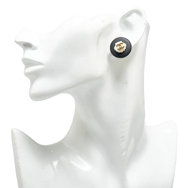 シャネル ココマーク イヤリング ブラック ホワイト ゴールド プラスチック メッキ レディース CHANEL 【中古】