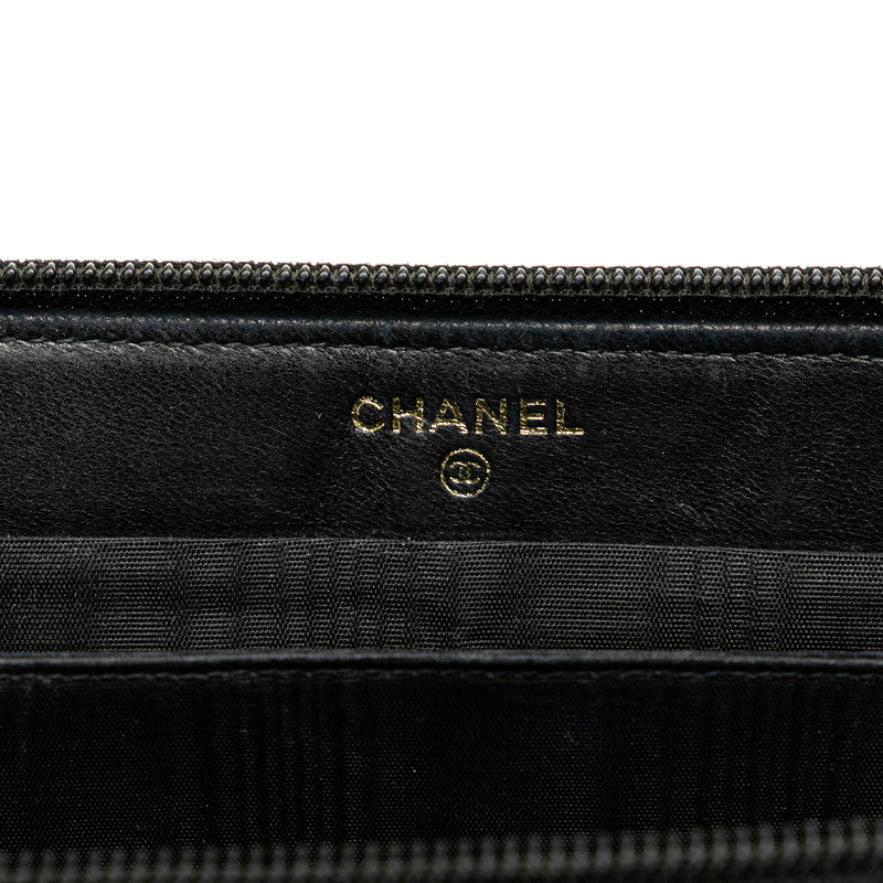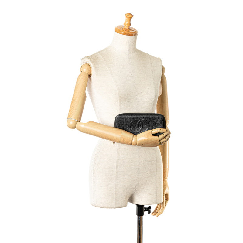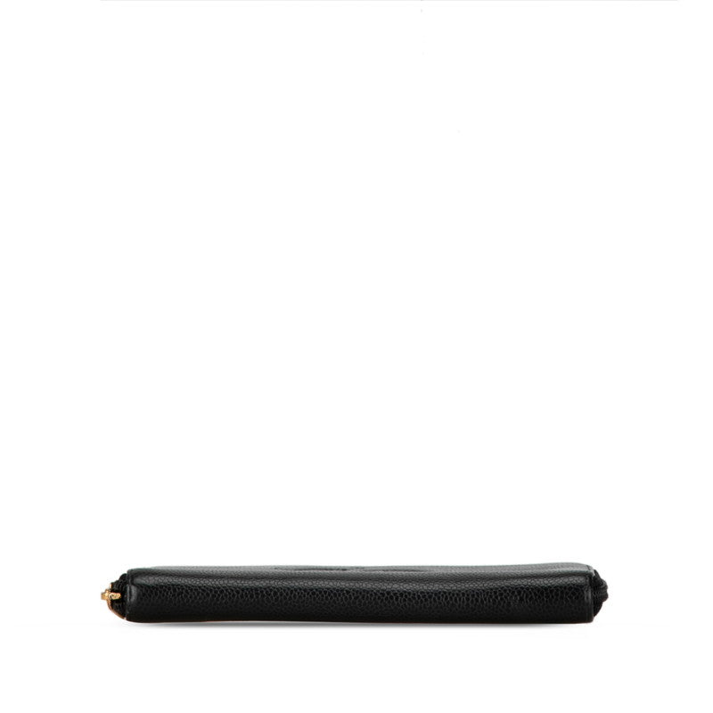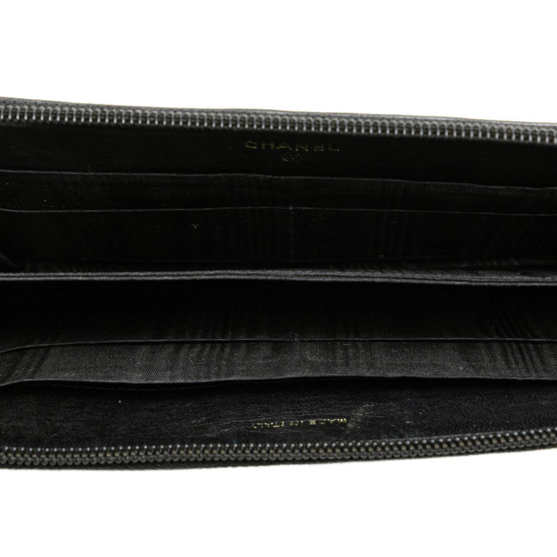 シャネル ココマーク ラウンドファスナー 長財布 ブラック キャビアスキン レディース CHANEL 【中古】