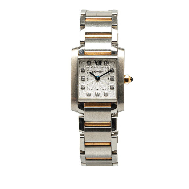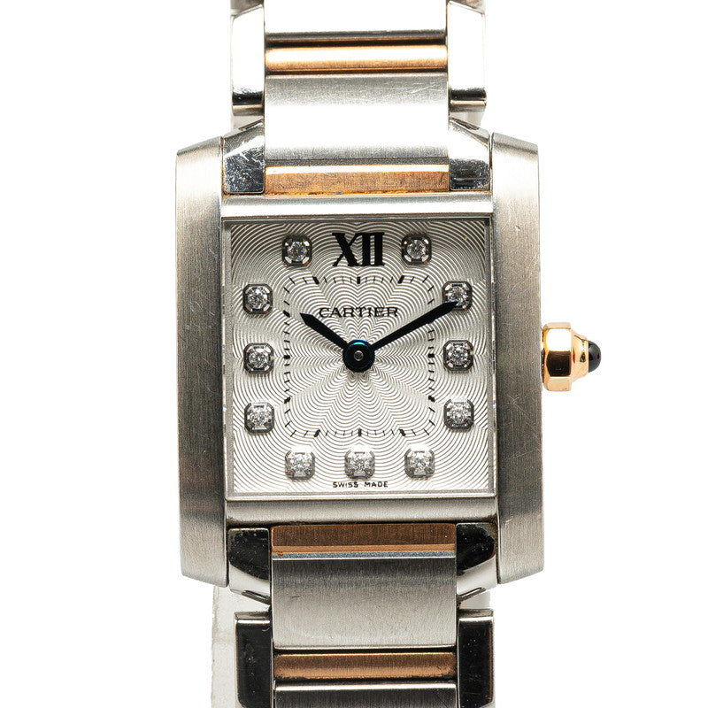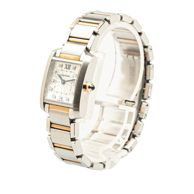 カルティエ タンクフランセーズSM 11P 腕時計 WE110004 クオーツ ホワイト文字盤 ステンレススチール K18PG ピンクゴールド コンビ レディース CARTIER 【中古】