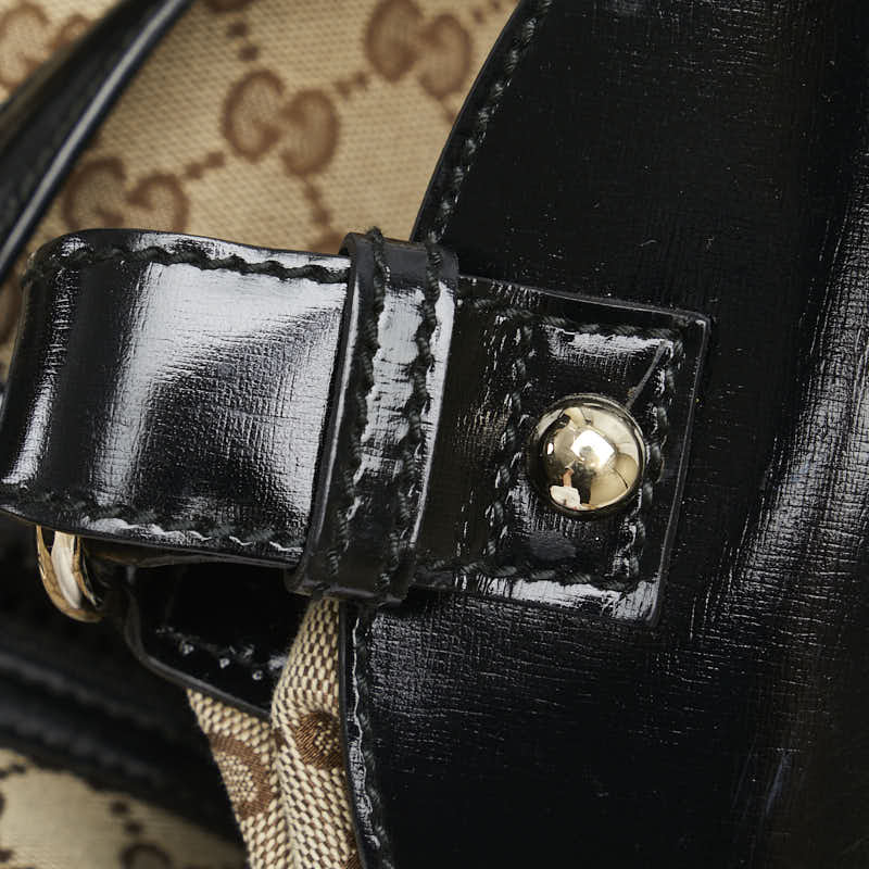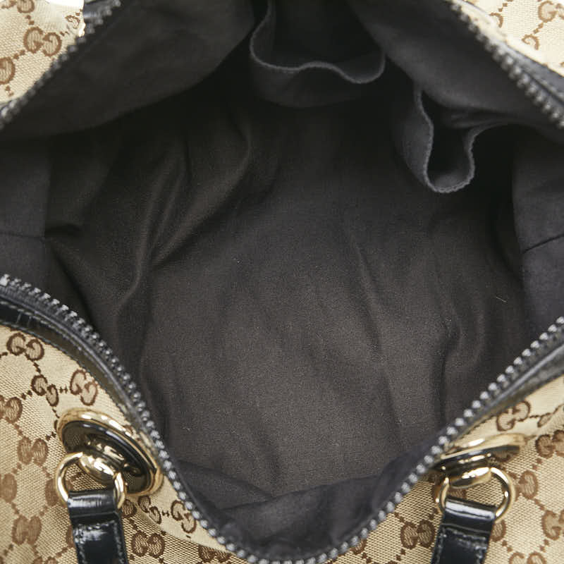 グッチ GGキャンバス トートバッグ 203530 ベージュ ブラック キャンバス レザー レディース GUCCI 【中古】