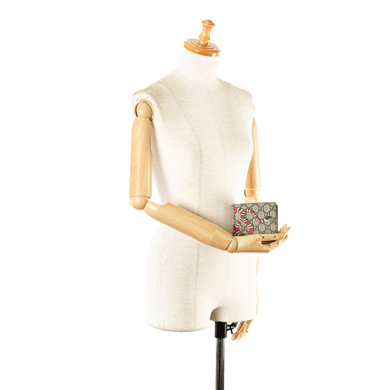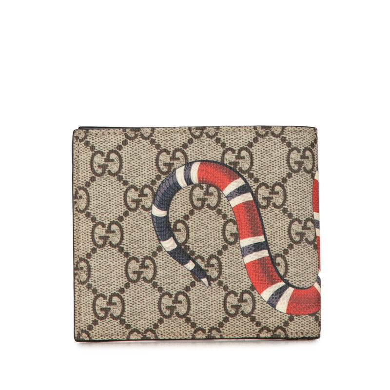 グッチ GGスプリーム キングスネーク 二つ折り財布 451266 ベージュ ブラウン PVC レザー メンズ GUCCI 【中古】