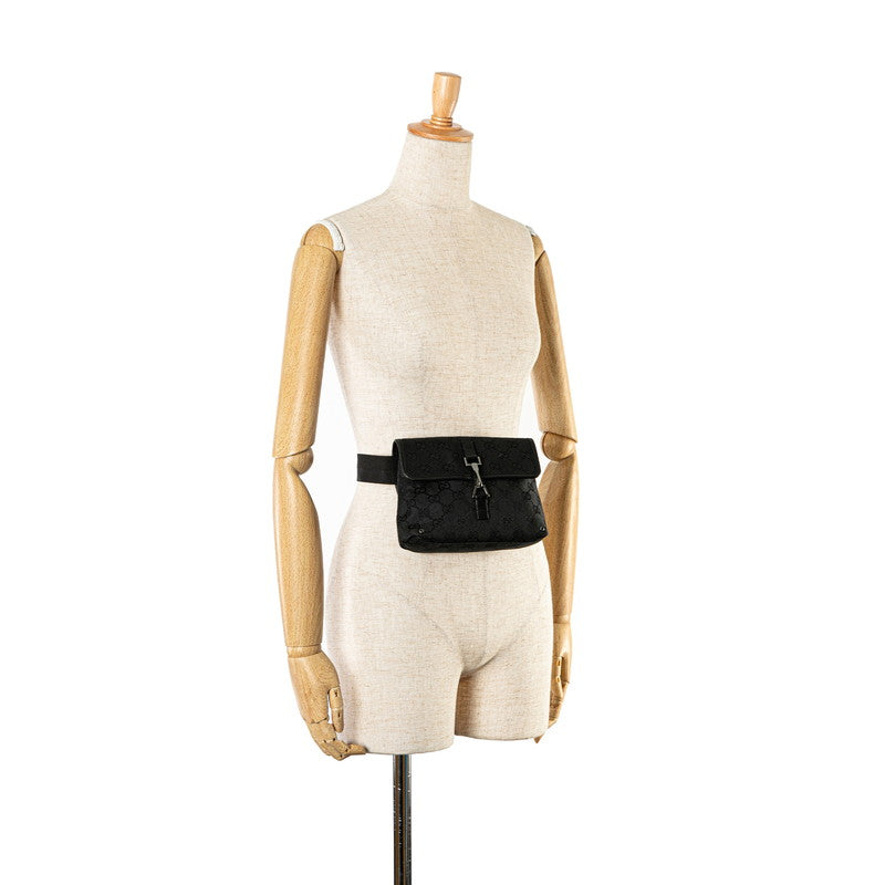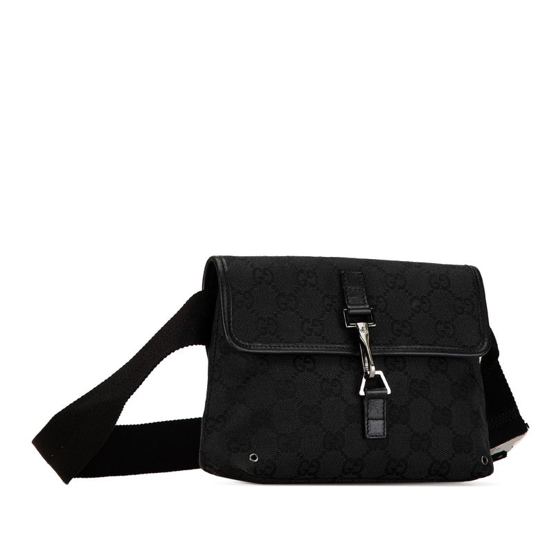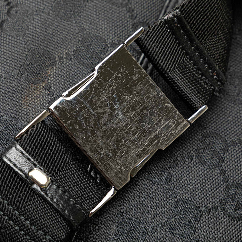 グッチ GGキャンバス ボディバッグ ウエストバッグ ショルダーバック 92543 ブラック キャンバス レザー レディース GUCCI 【中古】