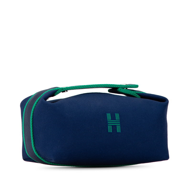 エルメス ブリッドアブラックPM ポーチ ハンドバッグ ブルー グリーン コットン レディース HERMES 【中古】