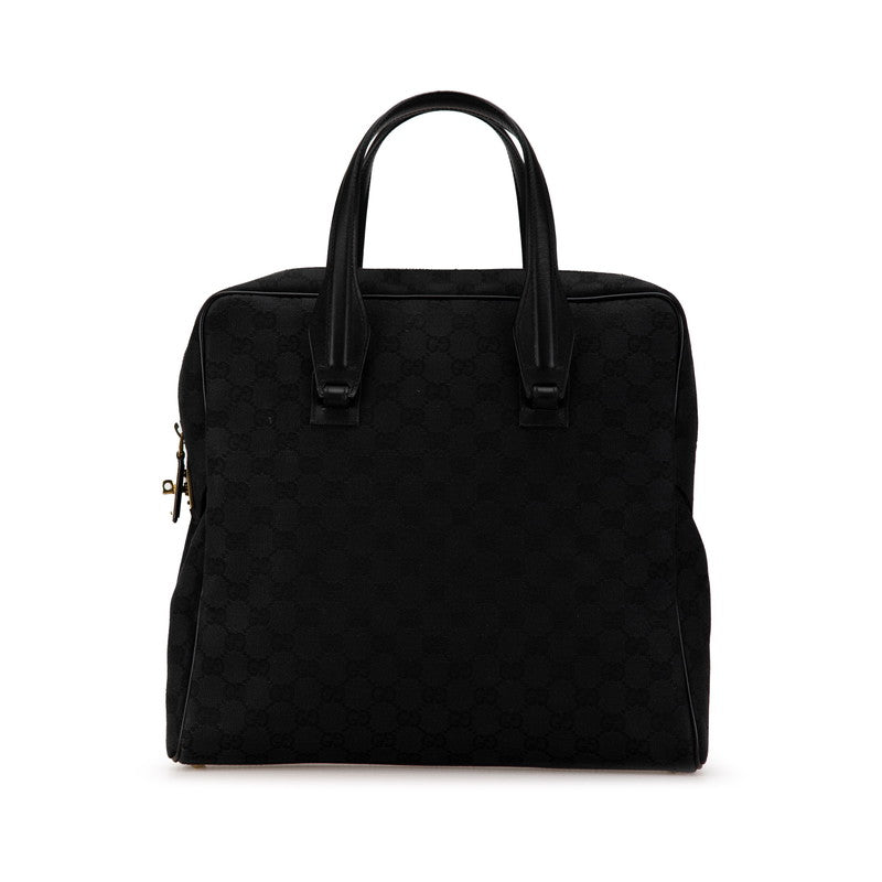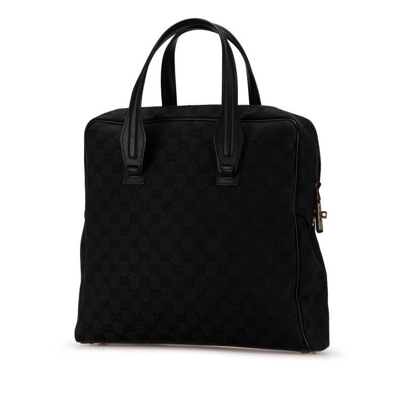 グッチ GGキャンバス トートバッグ ハンドバッグ 90677 ブラック キャンバス レザー レディース GUCCI 【中古】