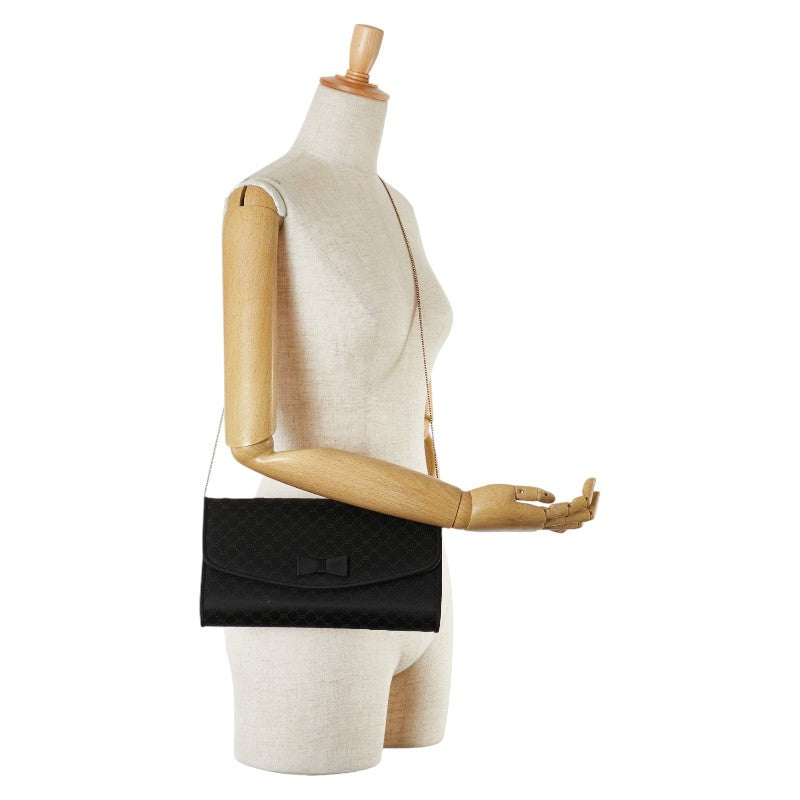 グッチ GG リボン フォーマル チェーン ショルダーバッグ 005-142-9348 ブラック サテン キャンバス レディース GUCCI 【中古】