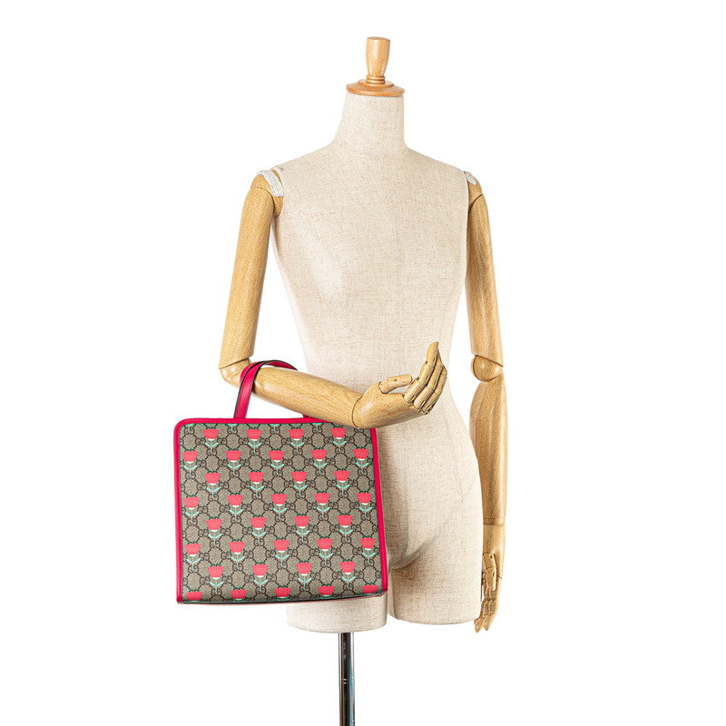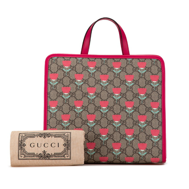グッチ GGスプリーム キム スンヨン フラワープリント トートバッグ 605614 ベージュ ピンク PVC レザー レディース GUCCI 【中古】
