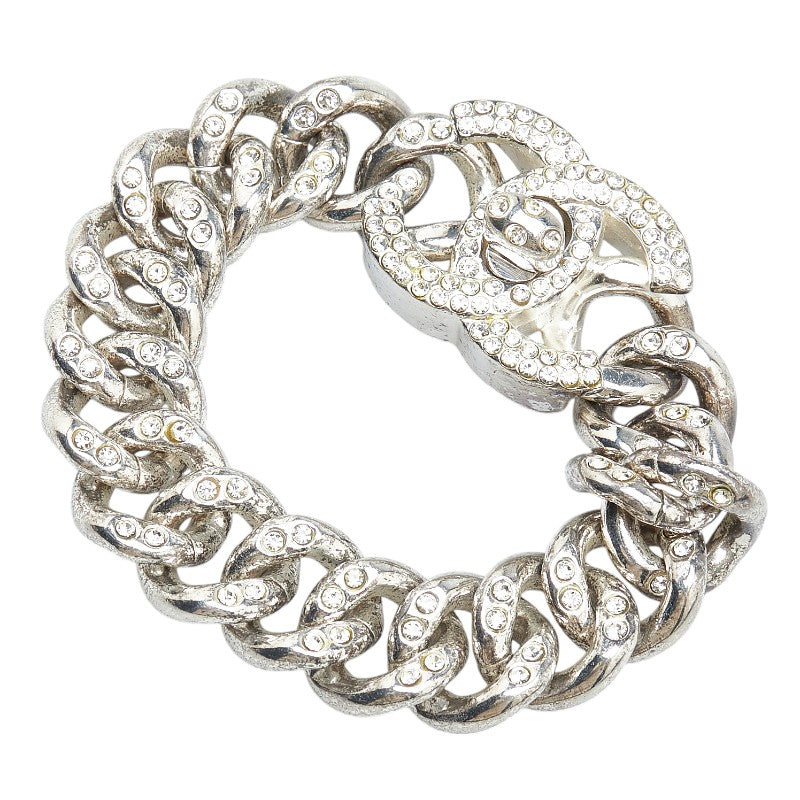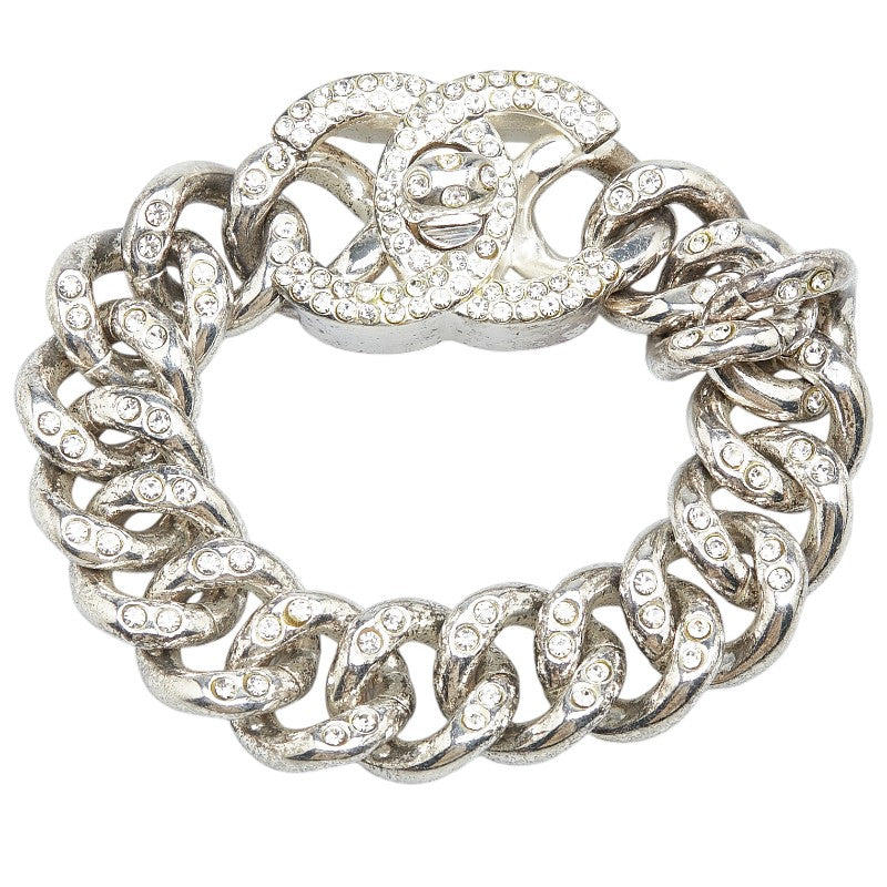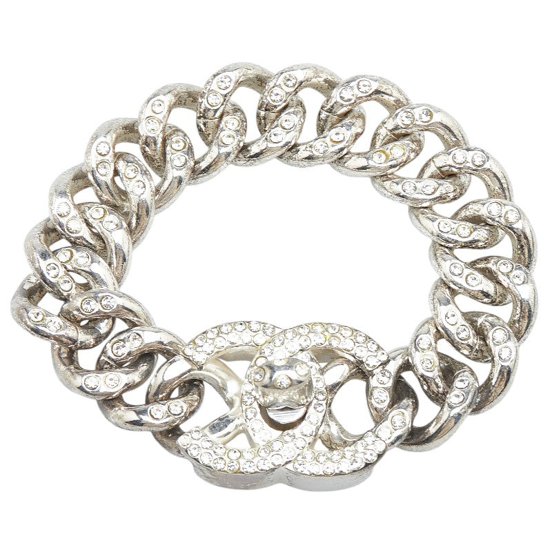 シャネル ココマーク ターンロック ラインストーン ブレスレット シルバー メタル レディース CHANEL 【中古】