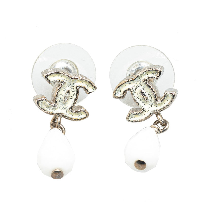 シャネル ココマーク ラメ ピアス シルバー ホワイト メタル レディース CHANEL 【中古】