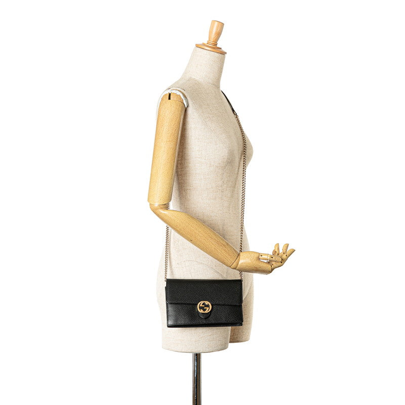 グッチ インターロッキングG チェーンウォレット ショルダーバッグ 510314 ネイビー レザー レディース GUCCI 【中古】