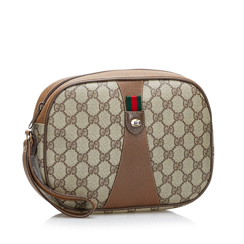 グッチ GGスプリーム アクセサリーコレクション オールドグッチ シェリー クラッチバッグ 89 01 034 ベージュ ブラウン PVC レザー レディース GUCCI 【中古】