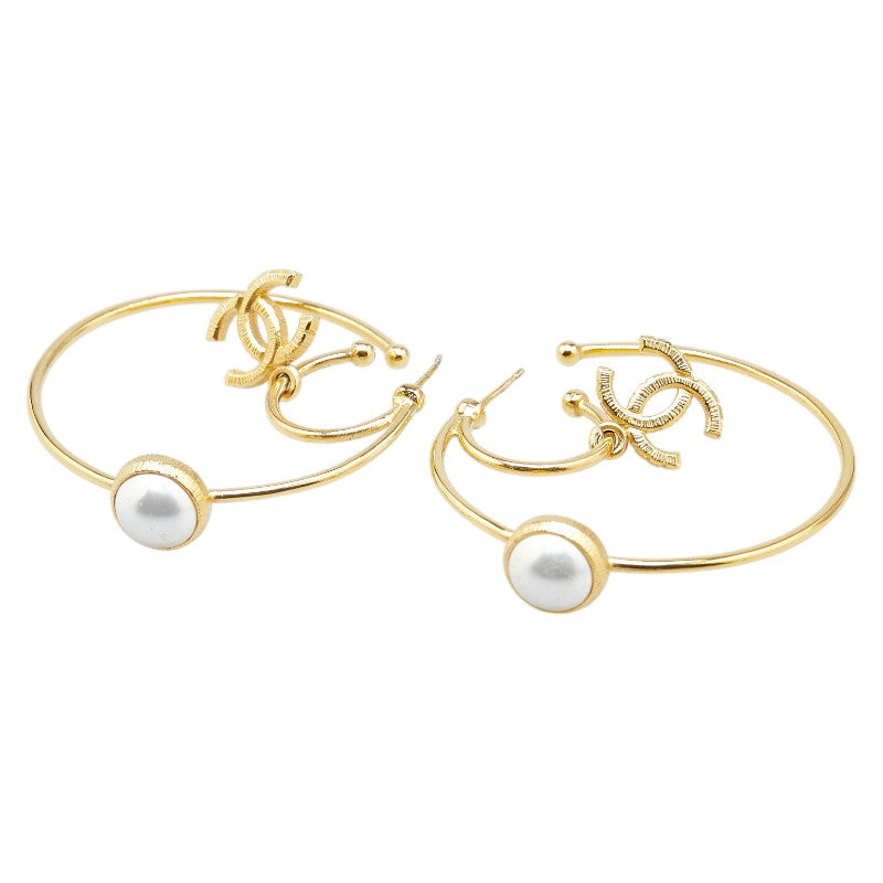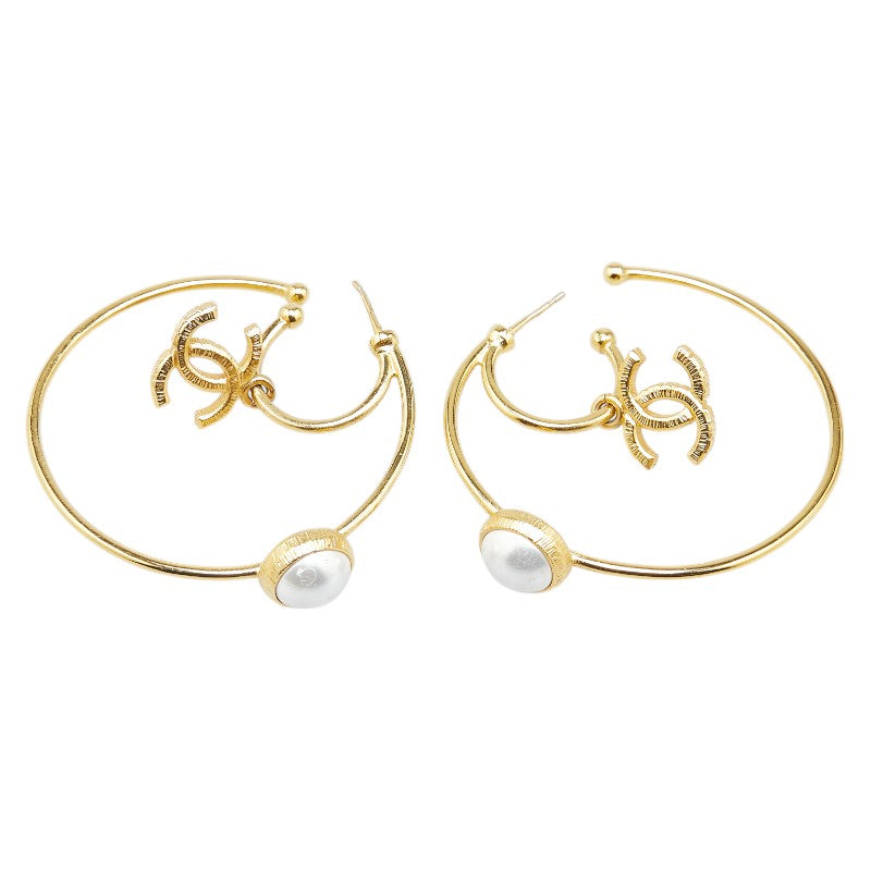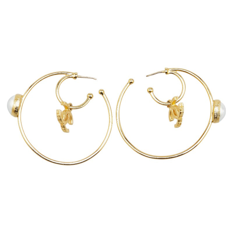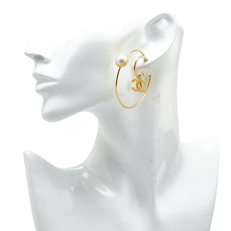 シャネル ココマーク フェイクパール フープ ピアス ゴールド メッキ レディース CHANEL 【中古】