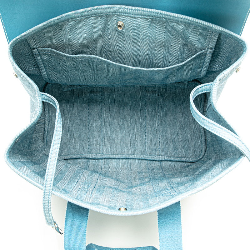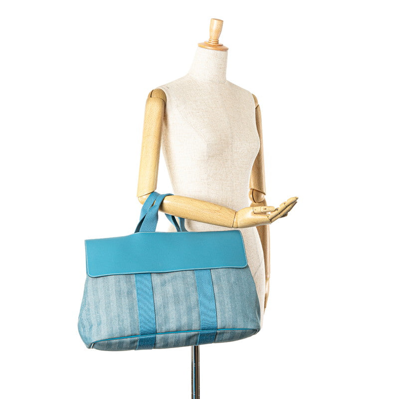 エルメス ヴァルパライソMM ハンドバッグ ブルージーン トワルシェブロン レザー レディース HERMES 【中古】