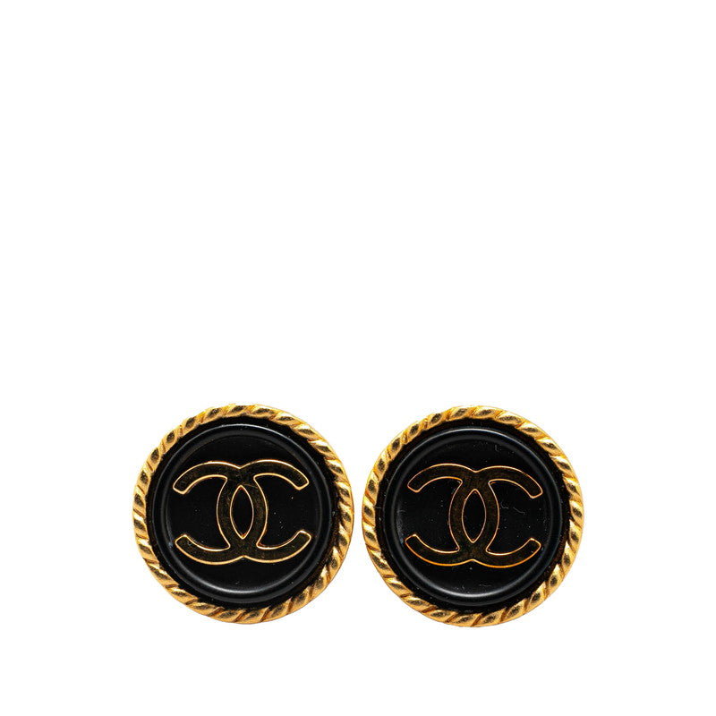 シャネル ココマーク ラウンド イヤリング ゴールド ブラック メッキ レディース CHANEL 【中古】