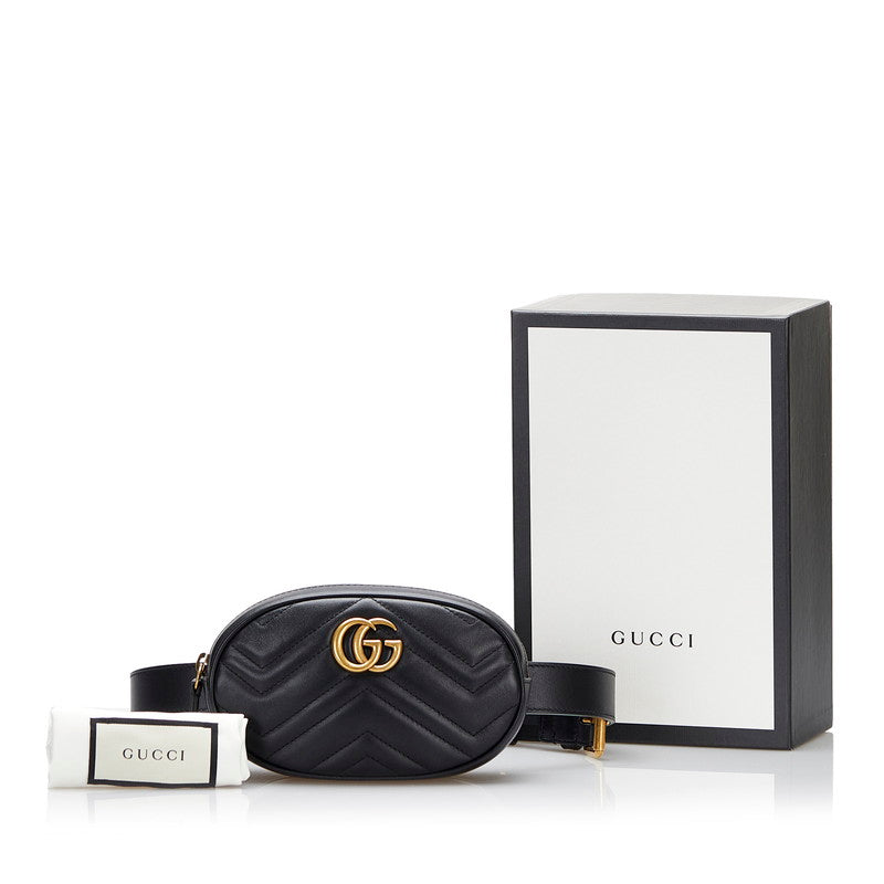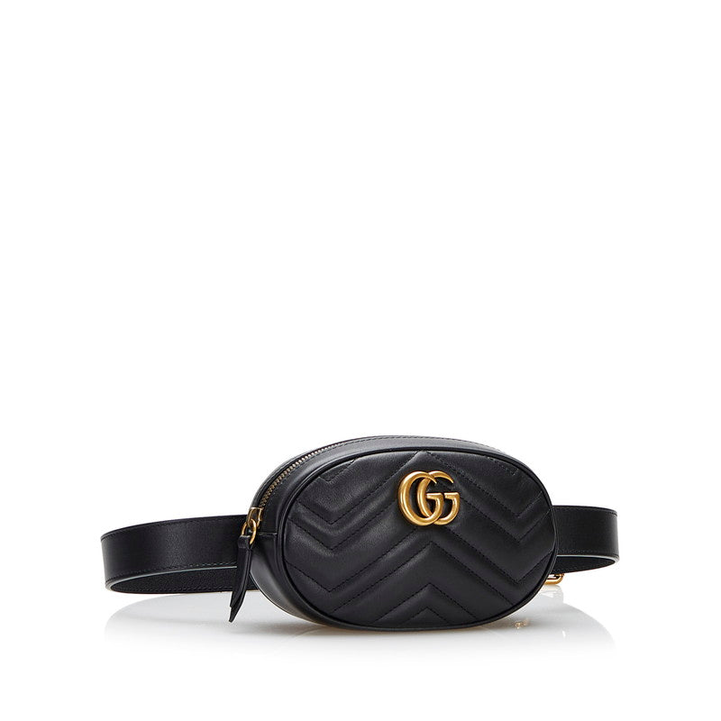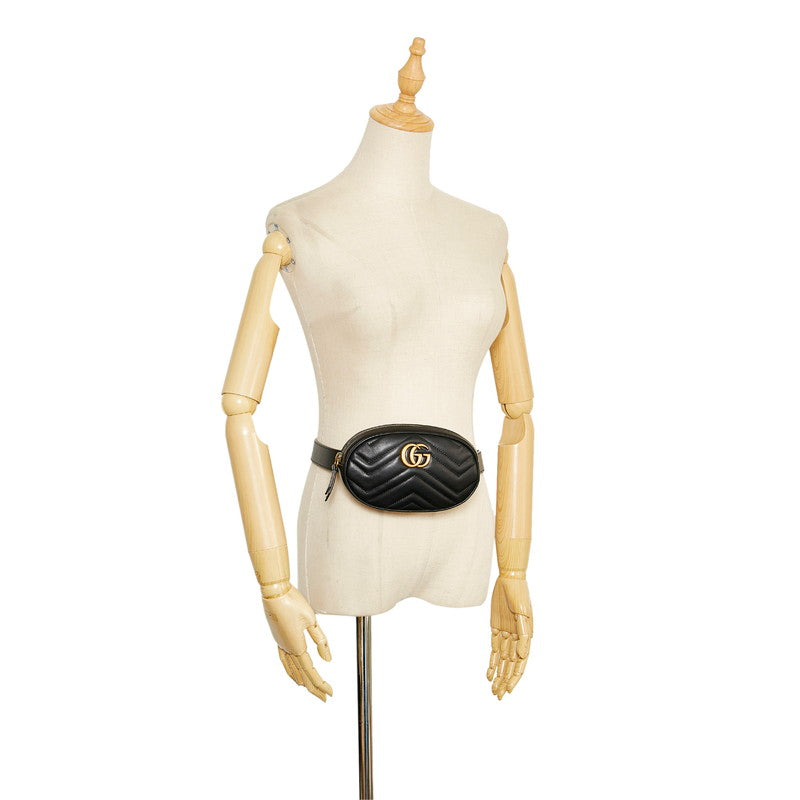 グッチ GGマーモント ウエストバッグ ボディバッグ ショルダーバッグ 476434 ブラック レザー レディース GUCCI 【中古】