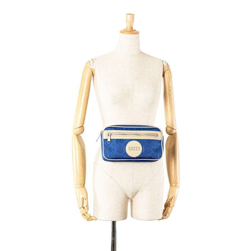 グッチ GGナイロン オブ ザ グリッド ボディバッグ ウエストバッグ 631342 ブルー ベージュ ナイロン レザー レディース GUCCI 【中古】