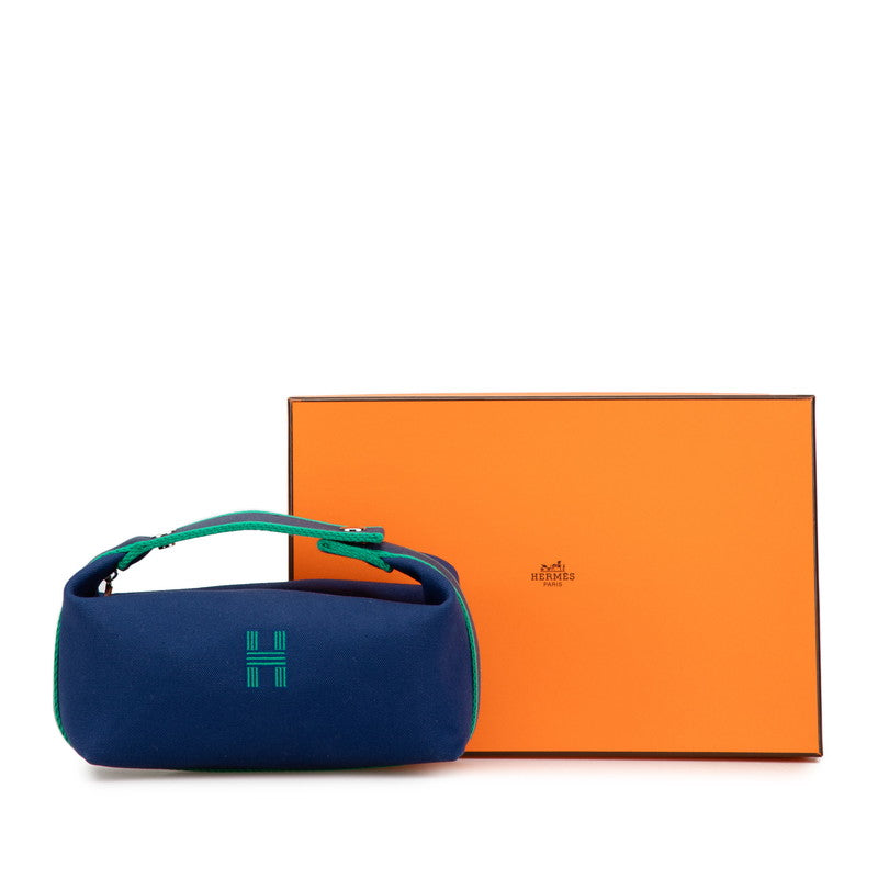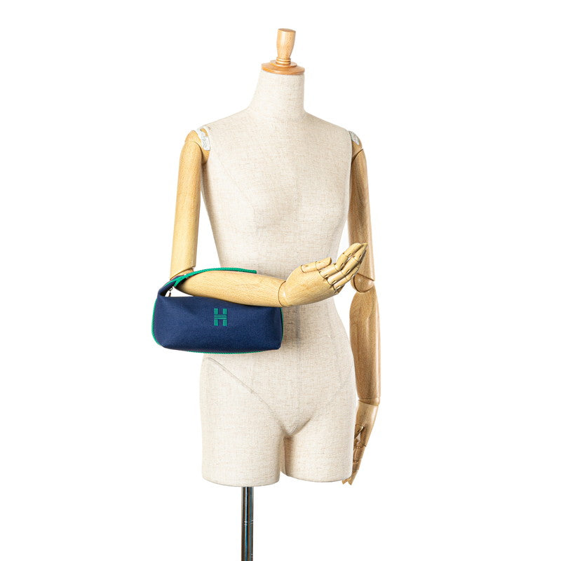 エルメス ブリッドアブラックPM ポーチ ハンドバッグ ネイビー グリーン コットン レディース HERMES 【中古】