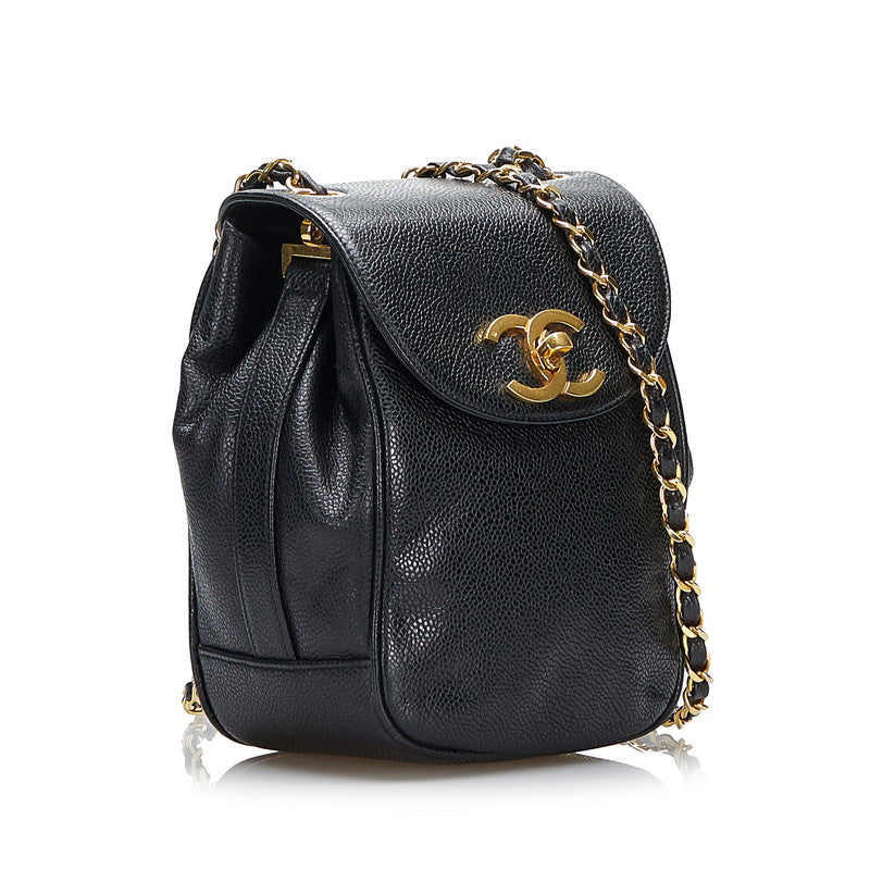 シャネル ココマーク ゴールド金具 斜め掛け チェーン ショルダーバッグ ブラック キャビアスキン レディース CHANEL 【中古】