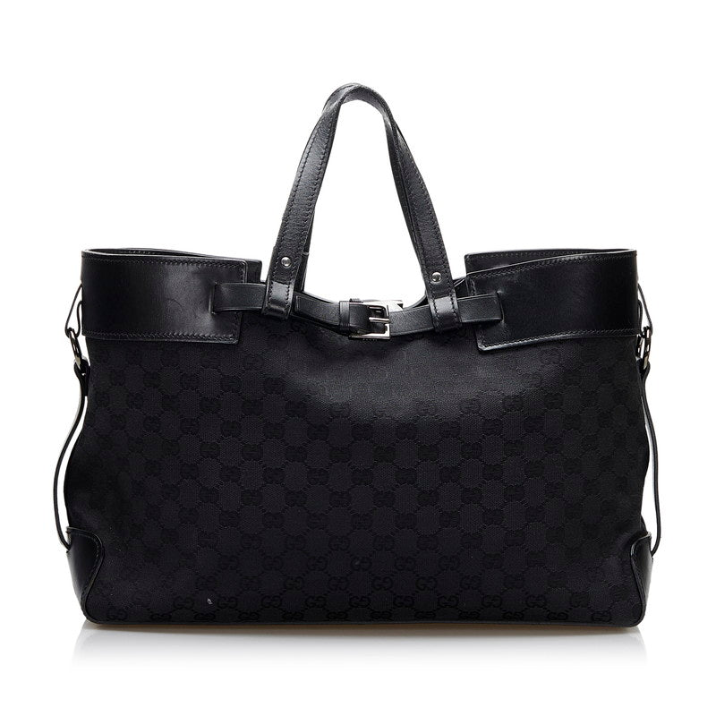 グッチ GGキャンバス ハンドバッグ トートバッグ 106251 ブラック キャンバス レザー レディース GUCCI 【中古】