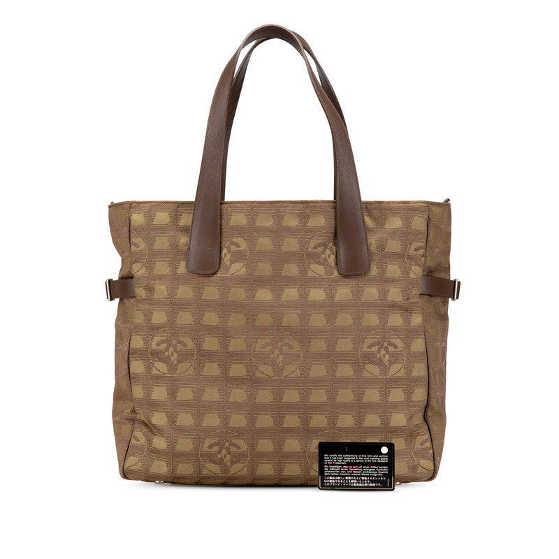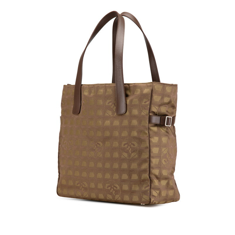 シャネル ニュートラベルライン トートGM トートバッグ カーキ ナイロン レザー レディース CHANEL 【中古】