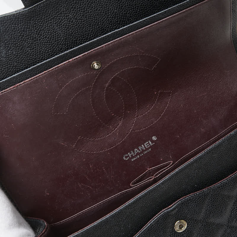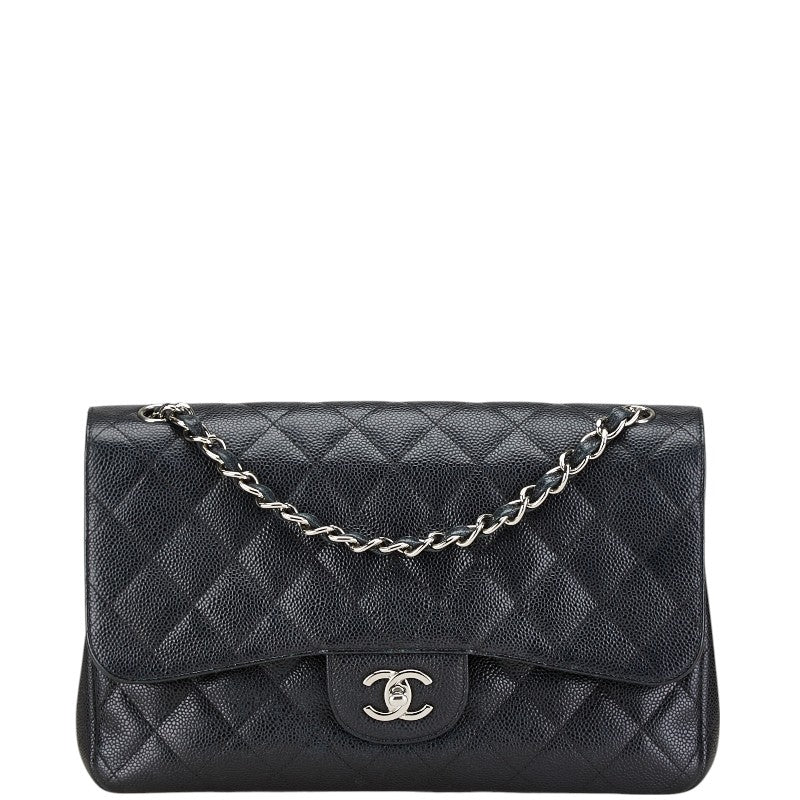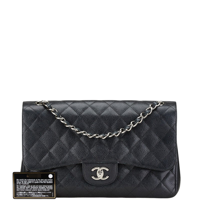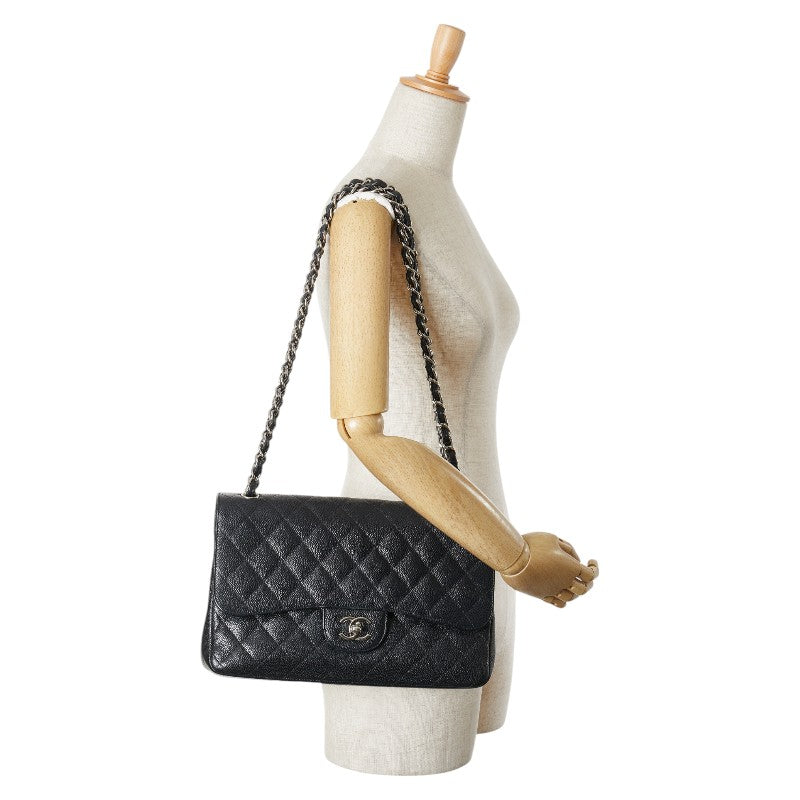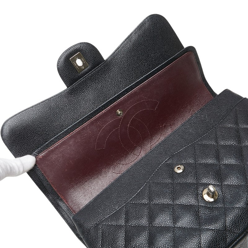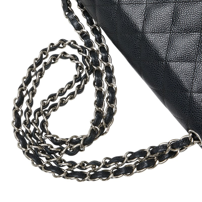 シャネル ココマーク ダブルフラップ デカマトラッセ30 チェーン ショルダーバッグ A58600 ブラック キャビアスキン レディース CHANEL 【中古】
