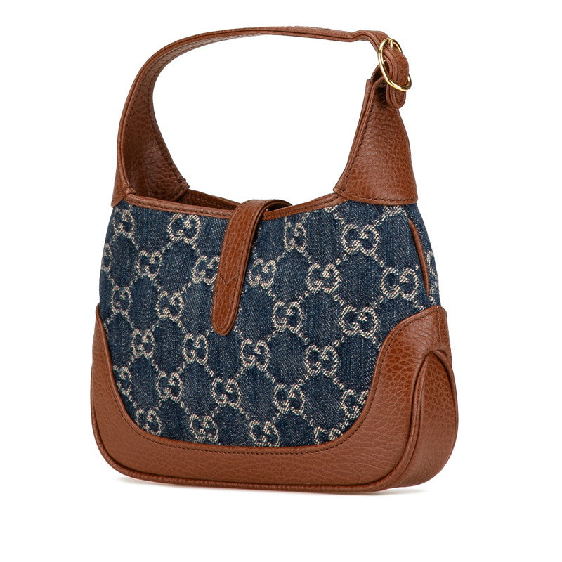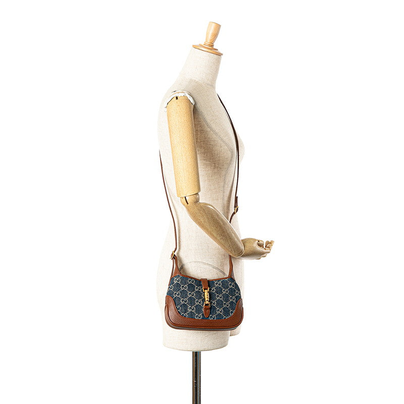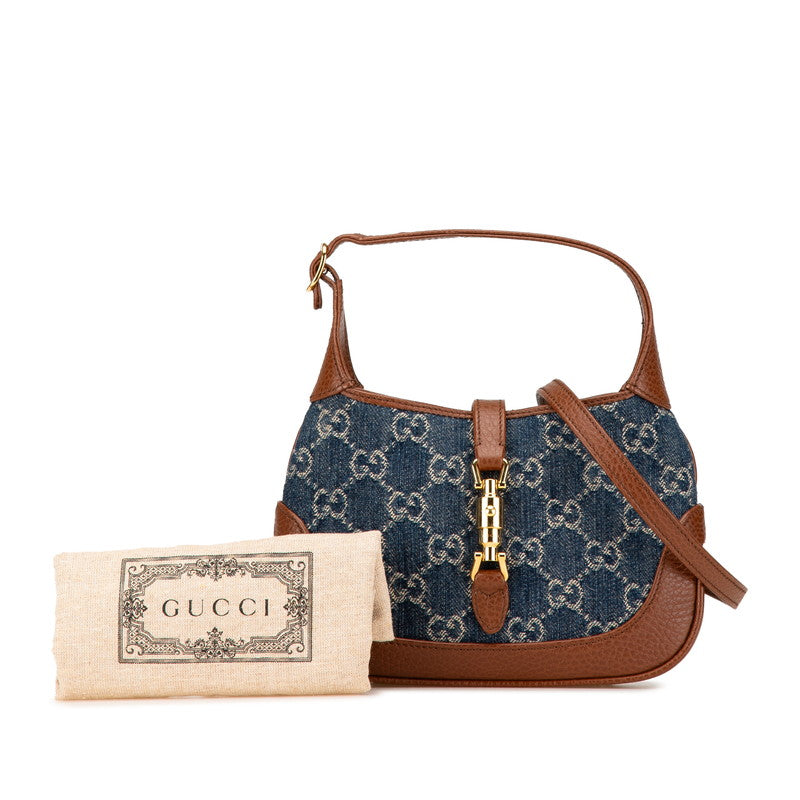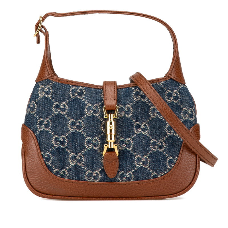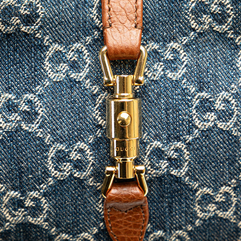 グッチ GGデニム ジャッキー 1961 ハンドバッグ ショルダーバッグ 2WAY 637092 ブルー ブラウン デニム レザー レディース GUCCI 【中古】