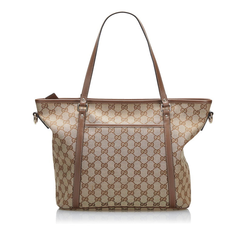 グッチ GGキャンバス トートバッグ ショルダーバッグ 2WAY 388929 ベージュ ブラウン キャンバス レザー レディース GUCCI 【中古】