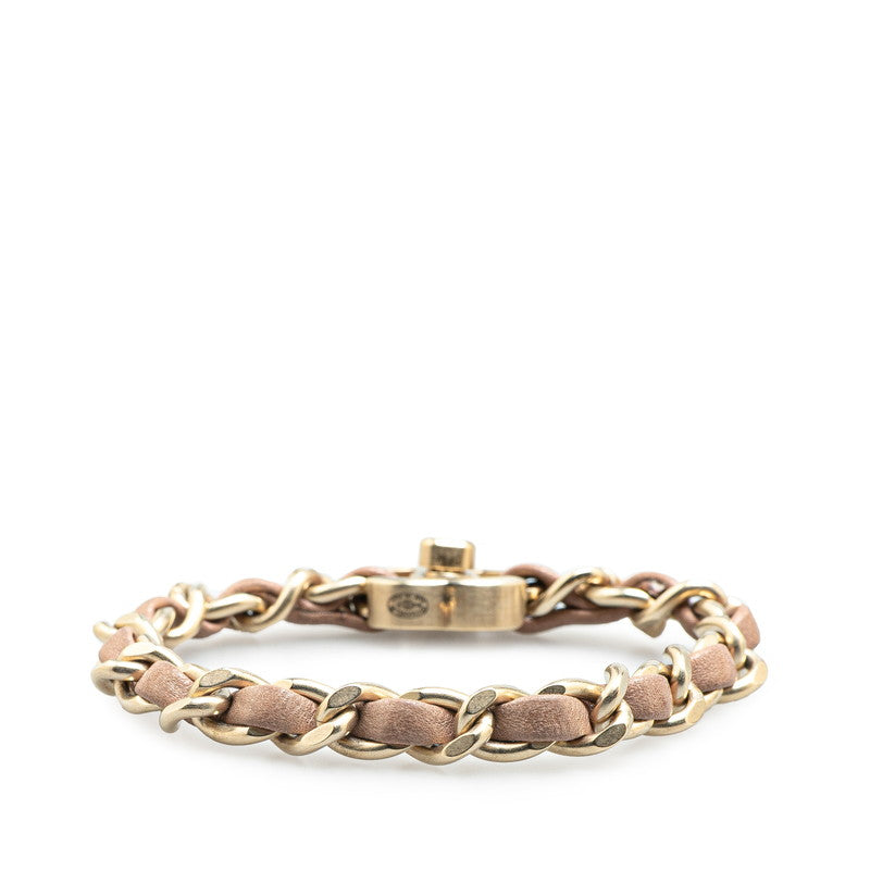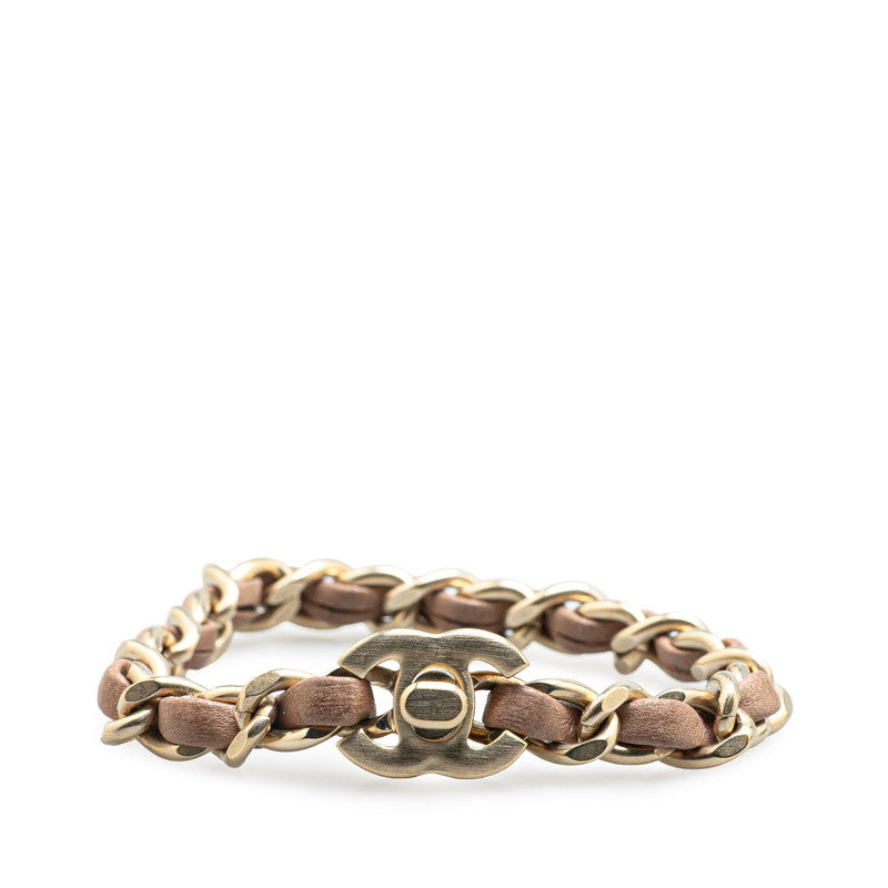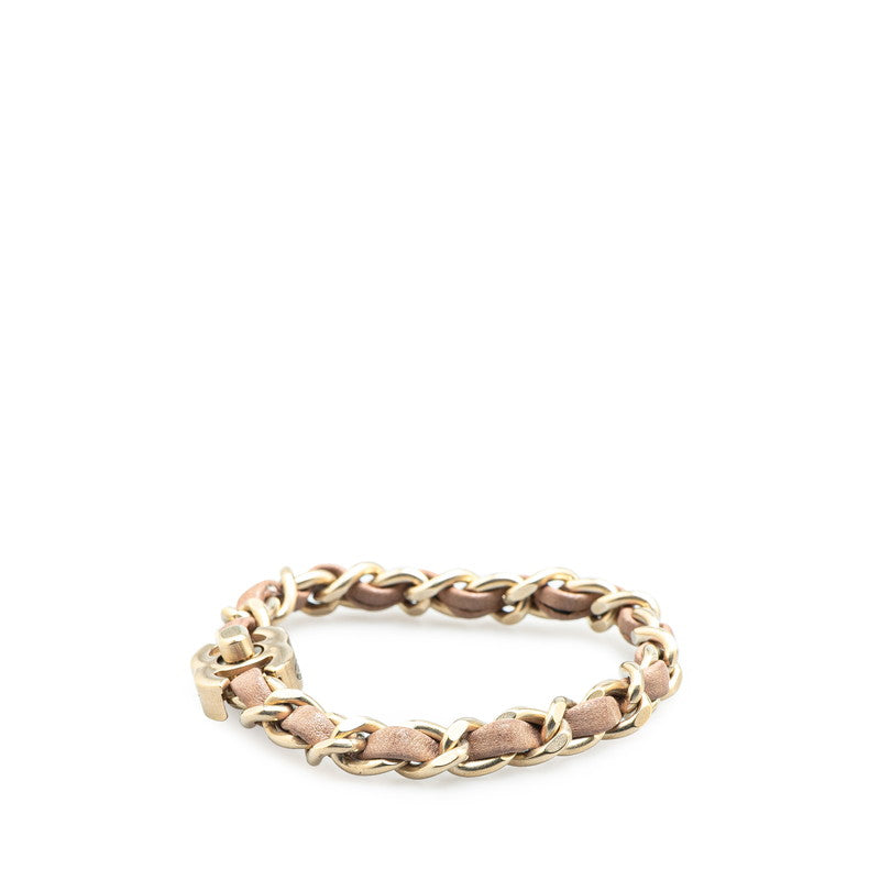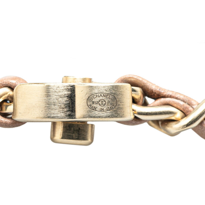 シャネル ココマーク ターンロック チェーン ブレスレット ゴールド ピンク メッキ レザー レディース CHANEL 【中古】