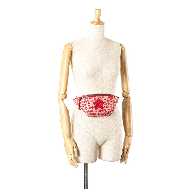 グッチ GGロゴ チルドレンズ スター ウエストバッグ ボディバッグ 502095 レッド キャンバス レザー レディース GUCCI 【中古】