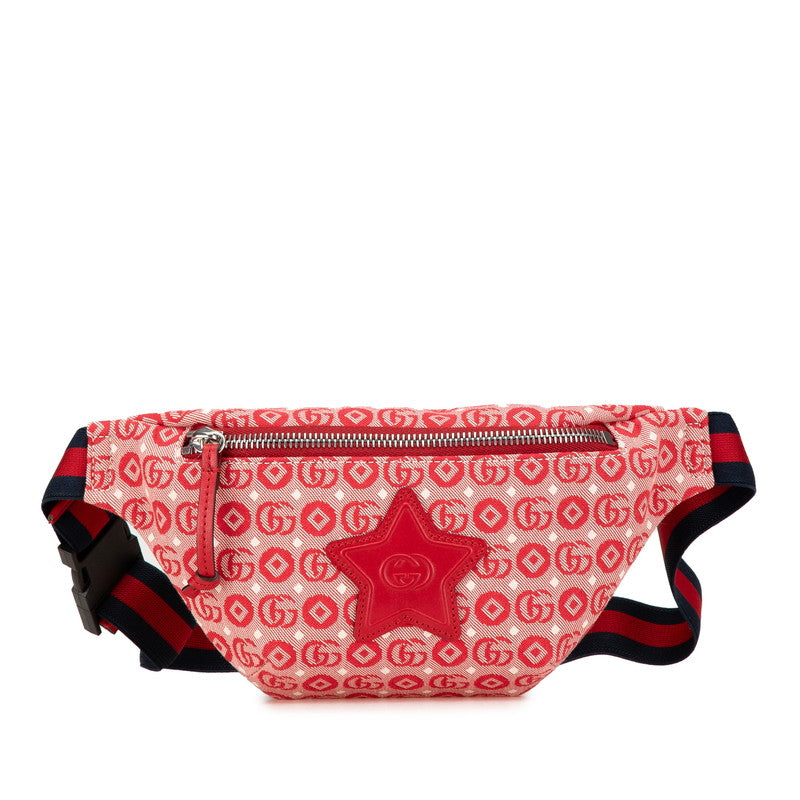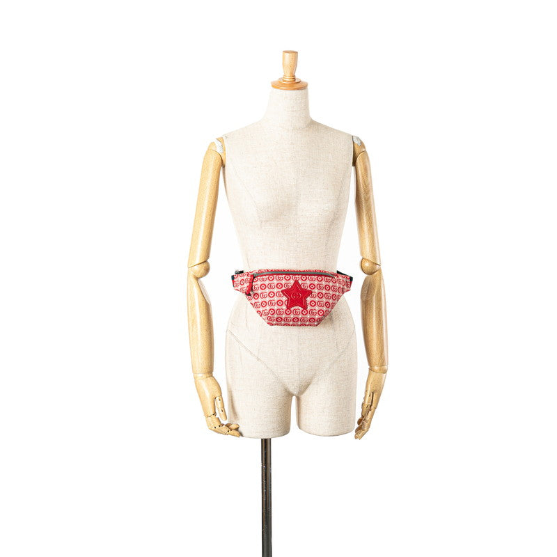 グッチ GGロゴ チルドレンズ スター ウエストバッグ ボディバッグ 502095 レッド キャンバス レザー レディース GUCCI 【中古】
