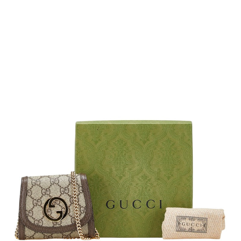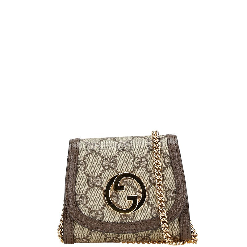 グッチ GGスプリーム ブロンディ ミディアム チェーンウォレット ショルダーバッグ 725219 ブラウン PVC レザー レディース GUCCI 【中古】