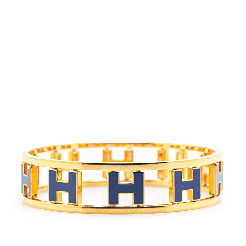 エルメス ロンドアッシュ Hロゴ バングル ゴールド ブルー メッキ レディース HERMES 【中古】