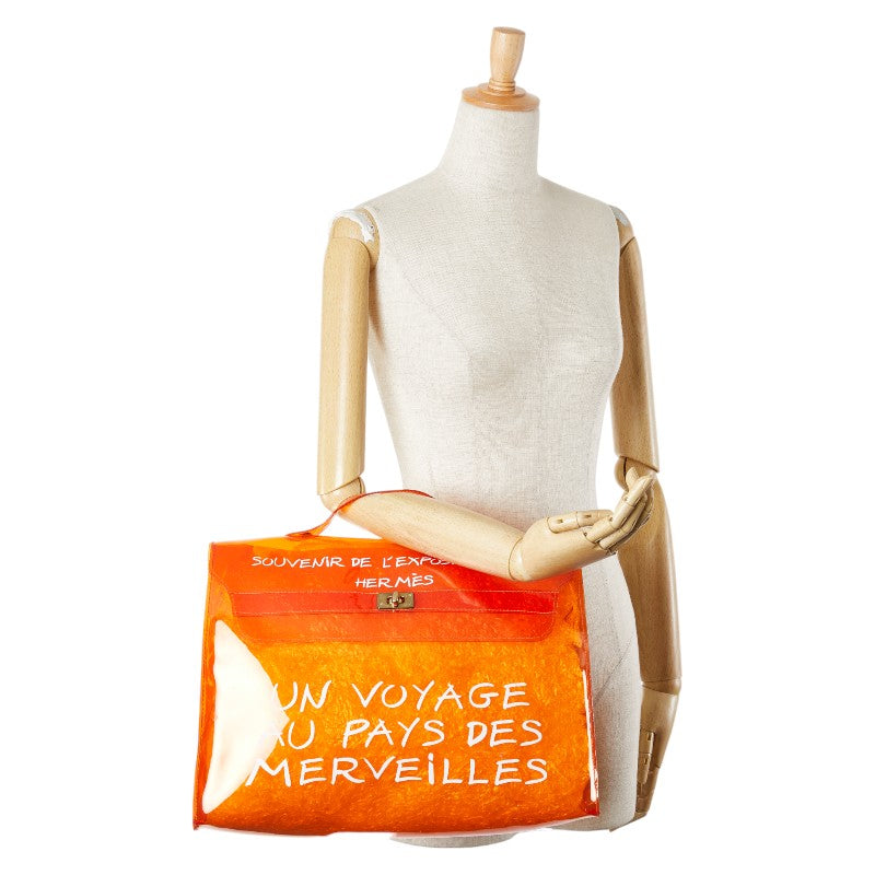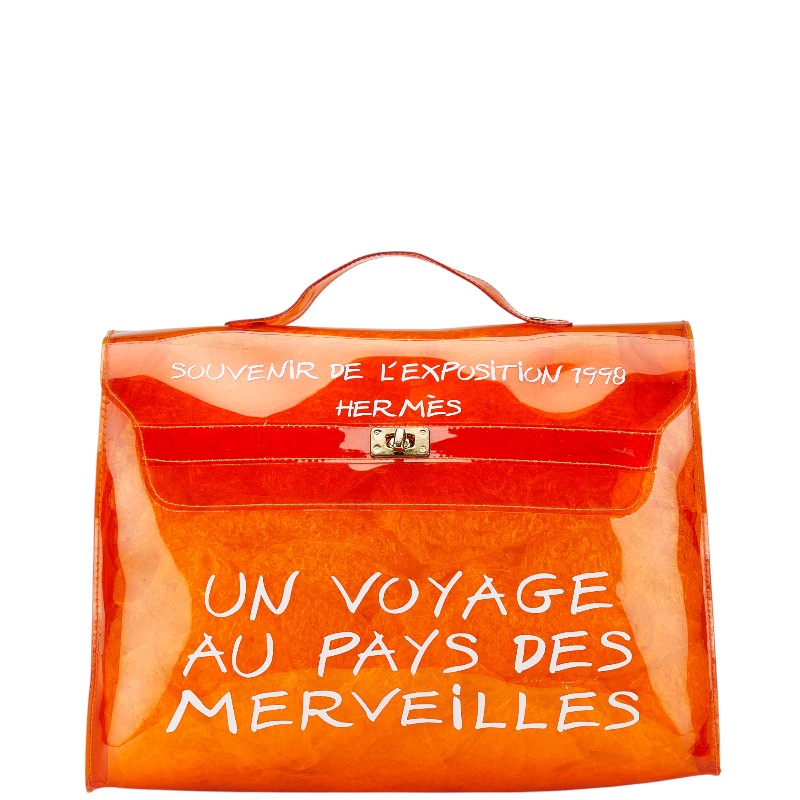 エルメス ビニールケリー 「不思議の国、エルメスへの旅」 ハンドバッグ トートバッグ オレンジ ビニール レディース HERMES 【中古】