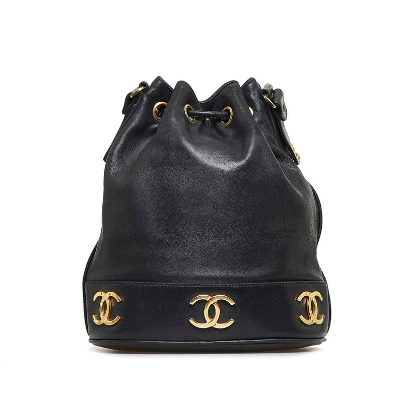 シャネル ココマーク トリプルココ ココボール チェーン ショルダーバッグ ブラック ゴールド ラムスキン レディース CHANEL 【中古】