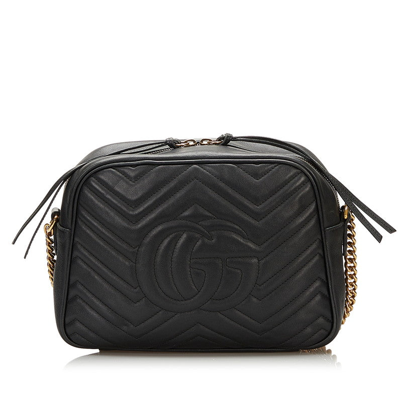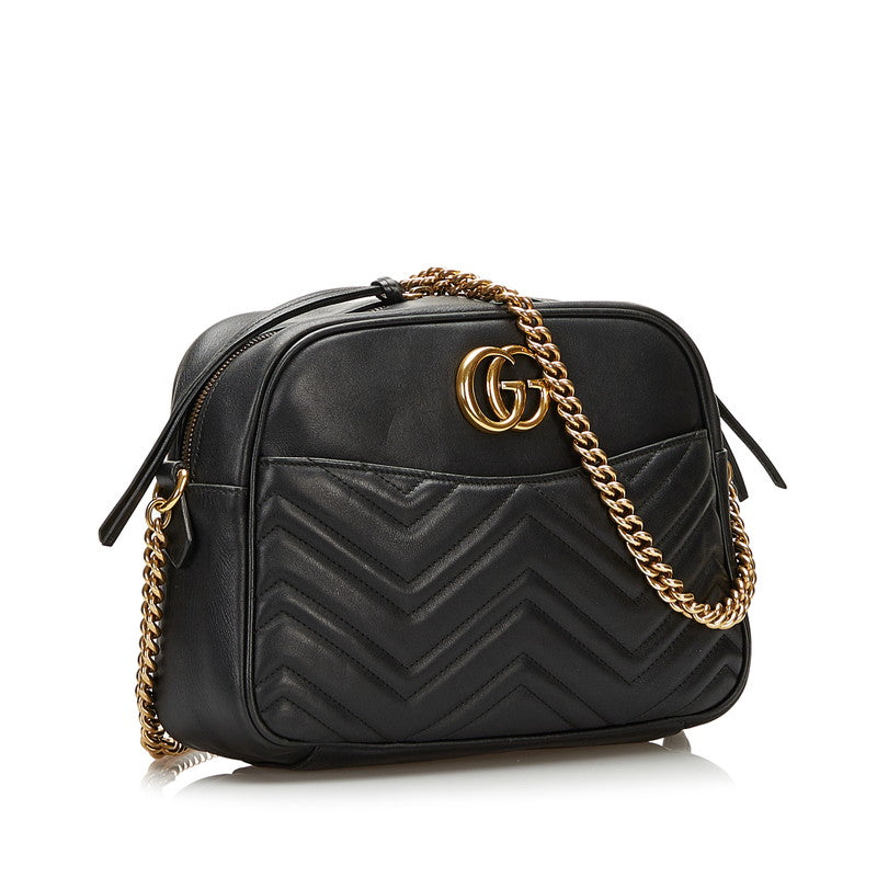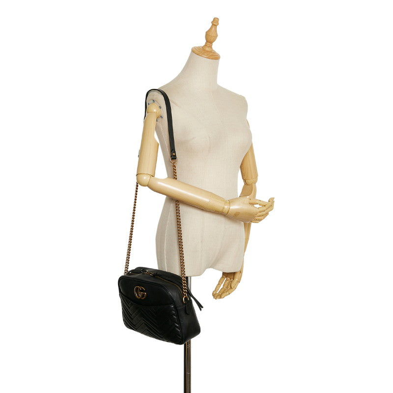 グッチ GGマーモント キルティング 斜め掛け チェーン ショルダーバッグ 443499 ブラック レザー レディース GUCCI 【中古】