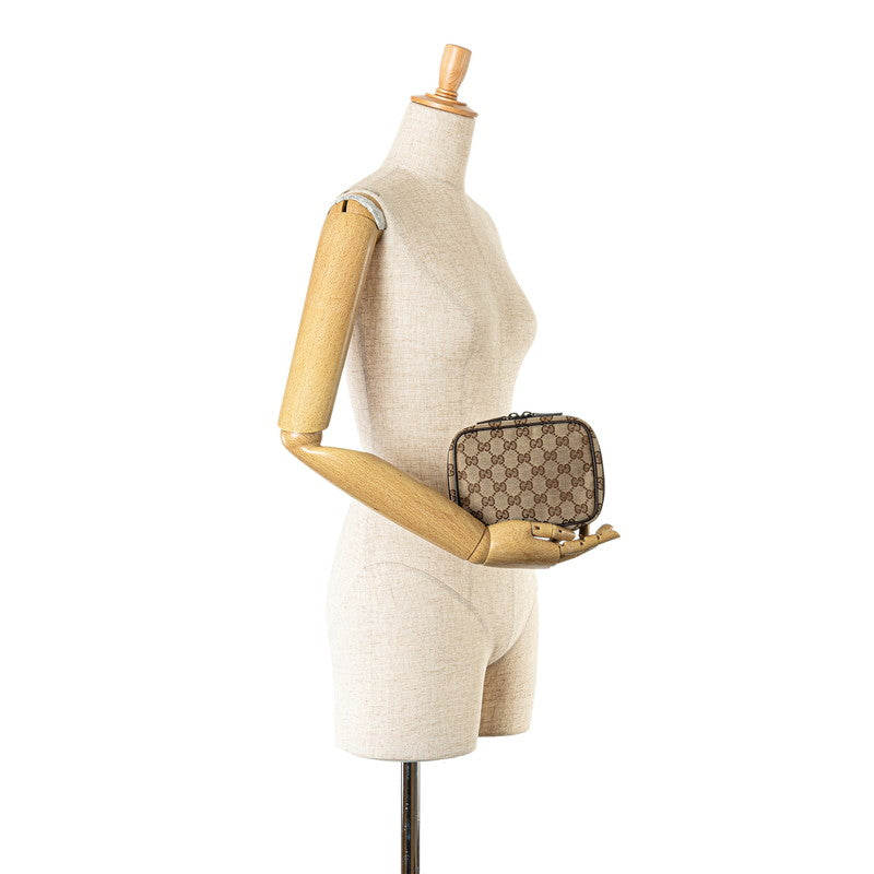 グッチ GGキャンバス ポーチ 化粧ポーチ 153129 ベージュ ブラウン キャンバス レザー レディース GUCCI 【中古】