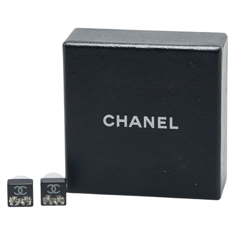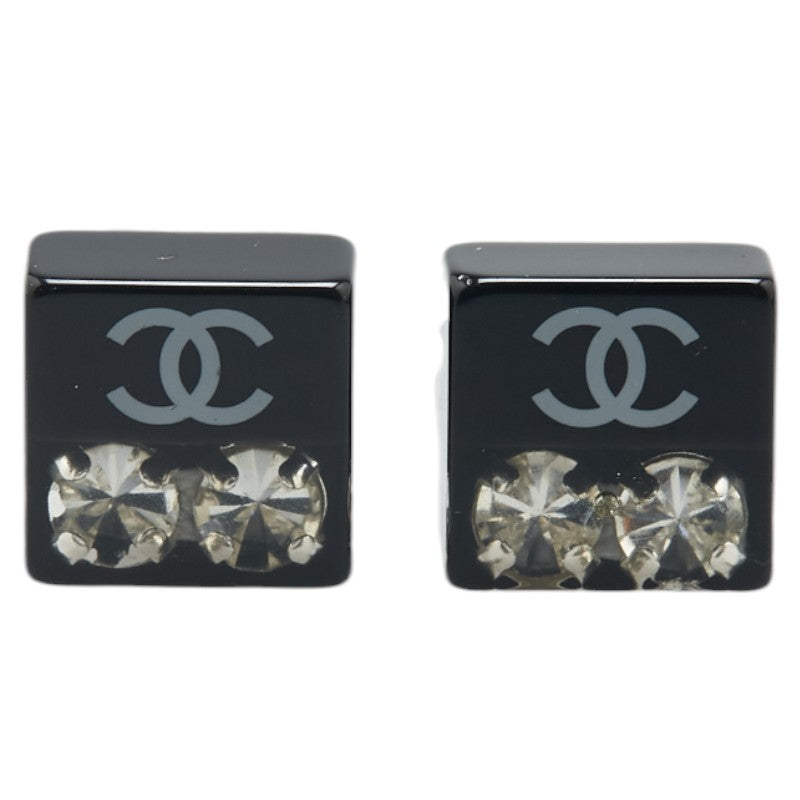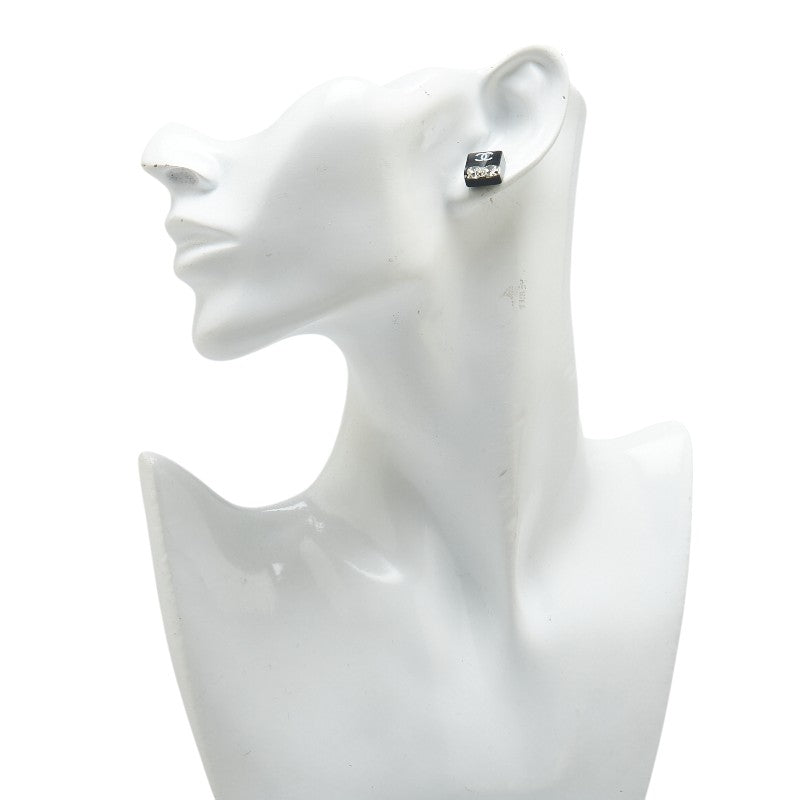 シャネル ココマーク ラインストーン スタッドピアス ブラック シルバー プラスチック メタル レディース CHANEL 【中古】